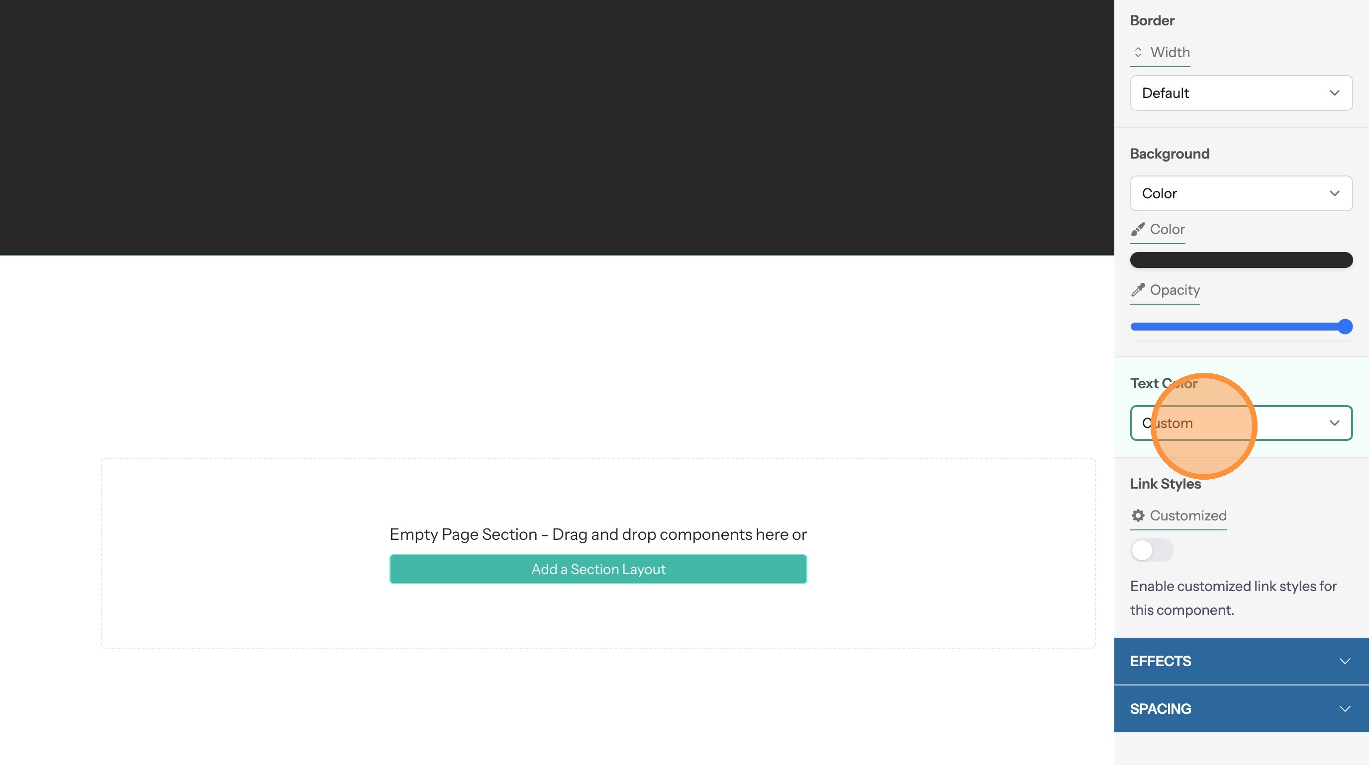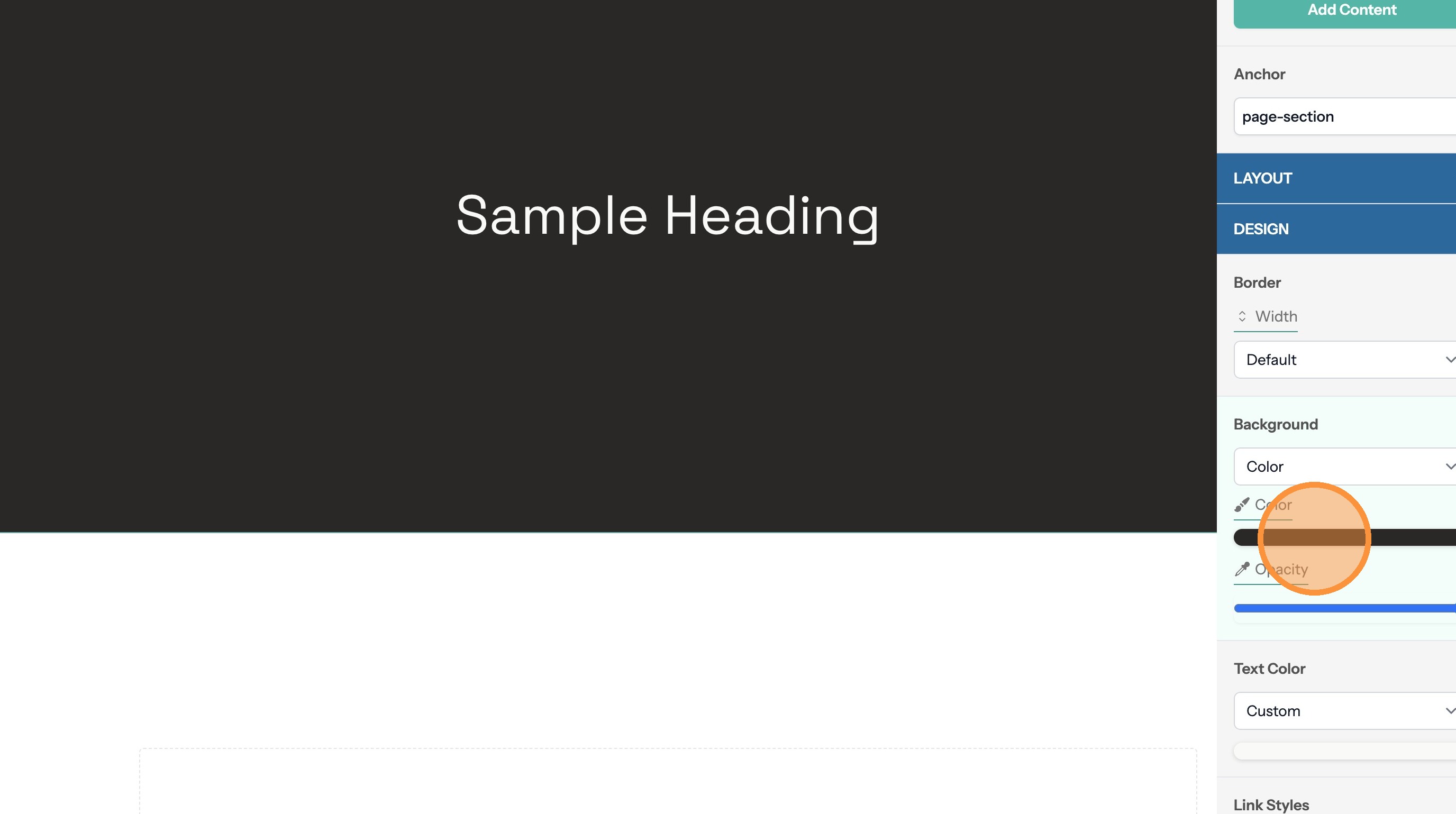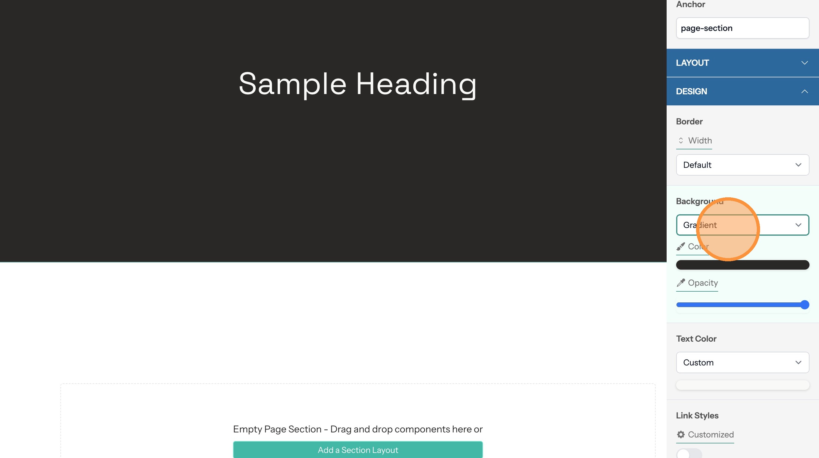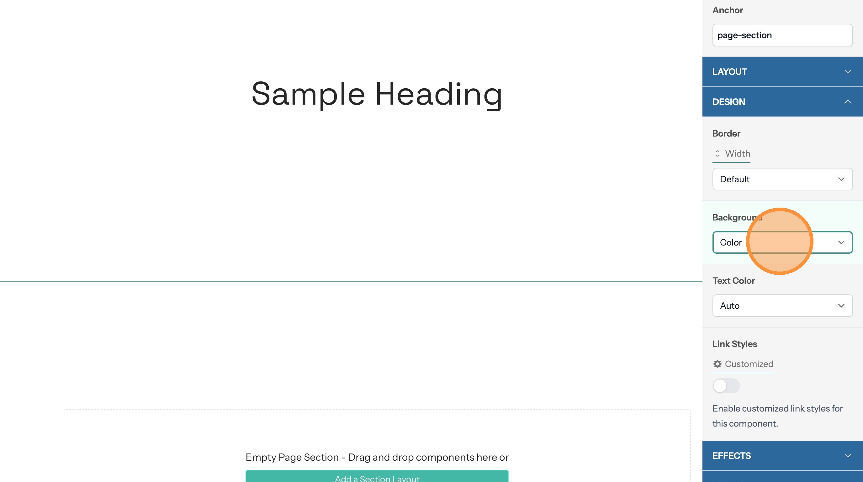 5. If the section text doesn't contrast with the background color you can change the text color here