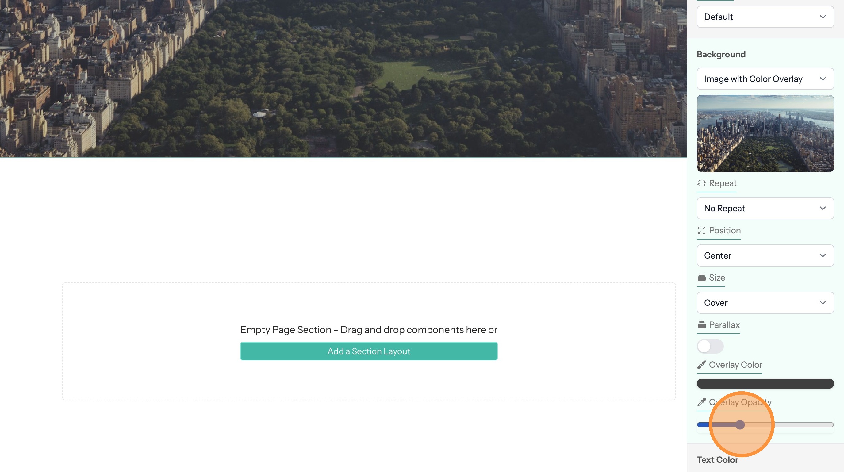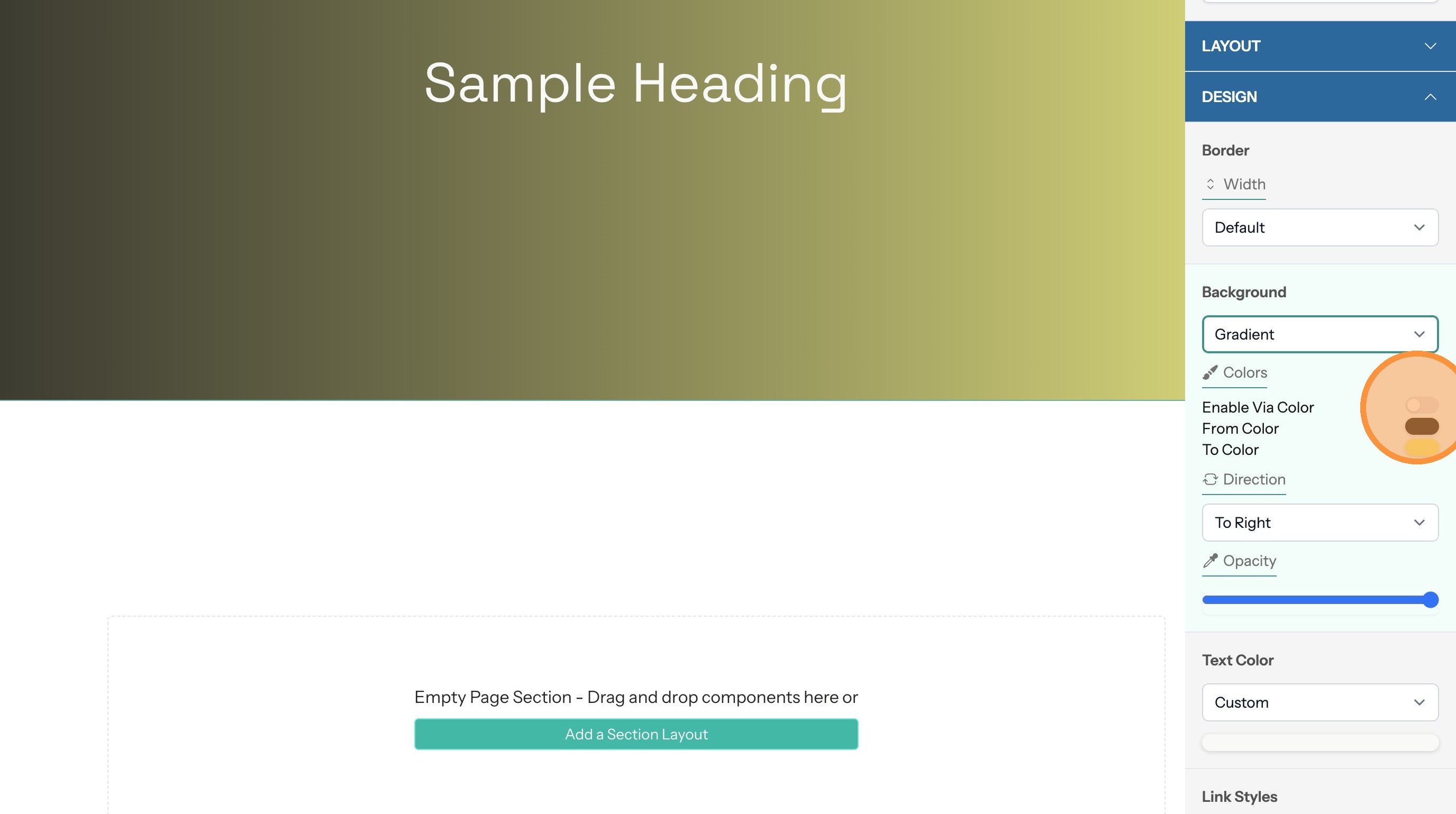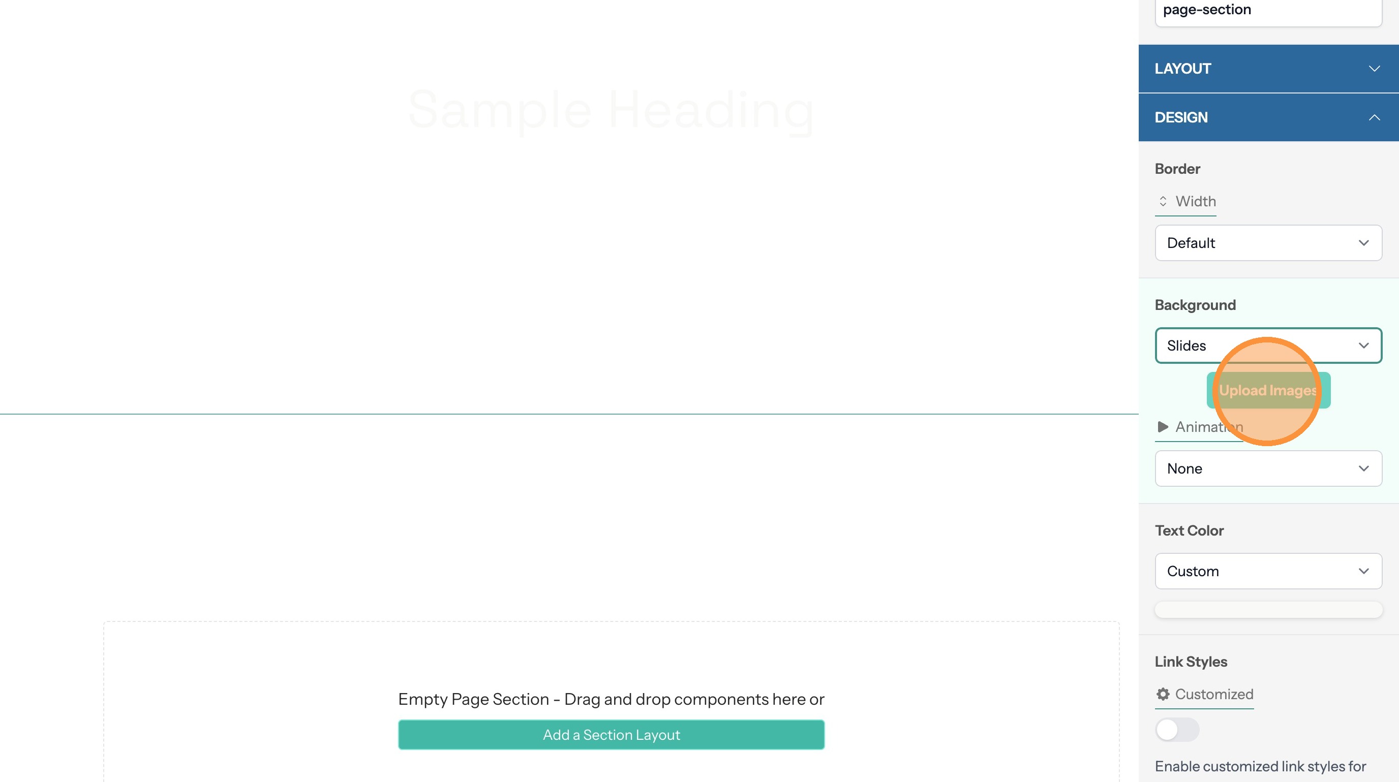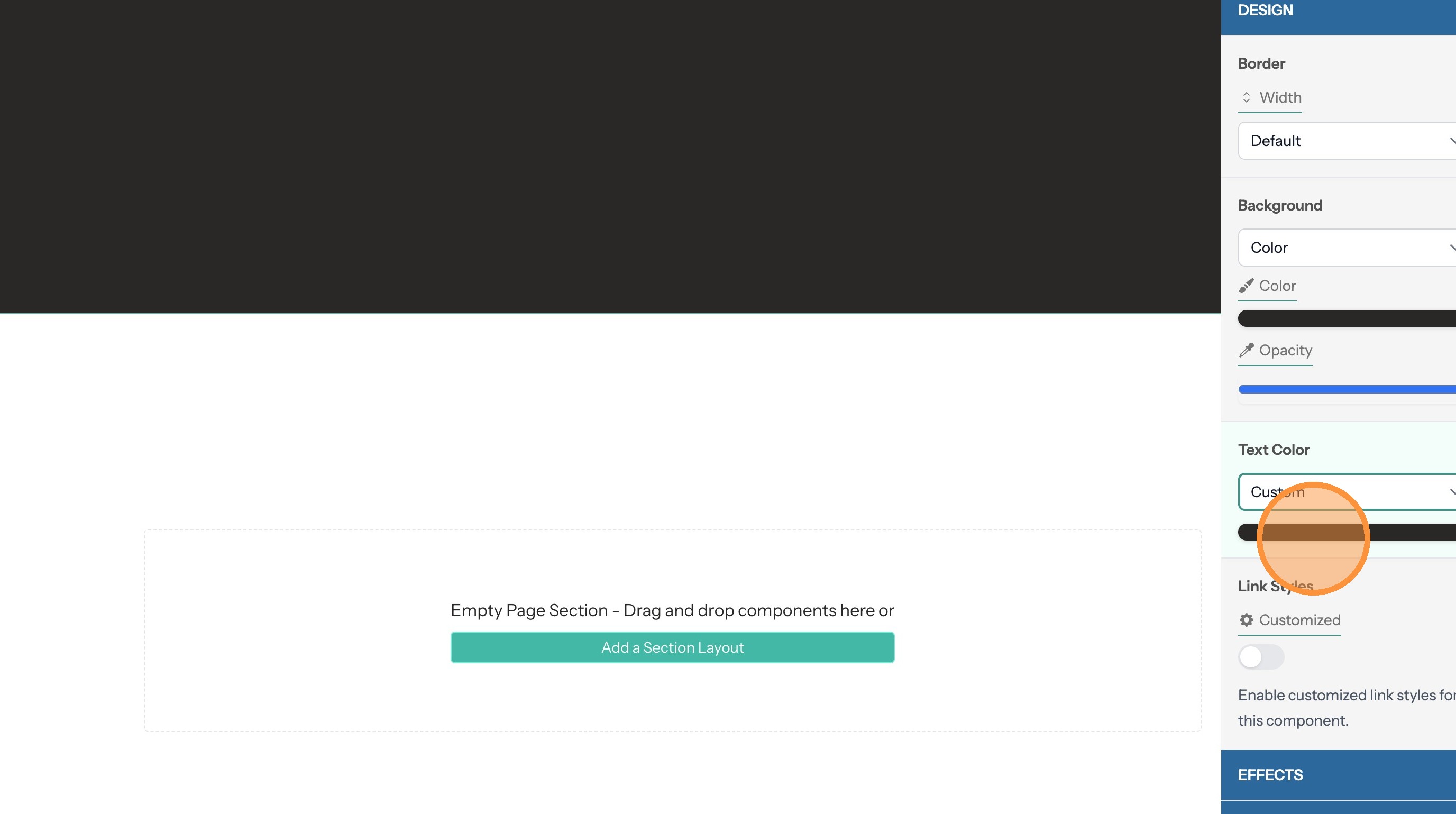 5. If the section text doesn't contrast with the background color you can change the text color here