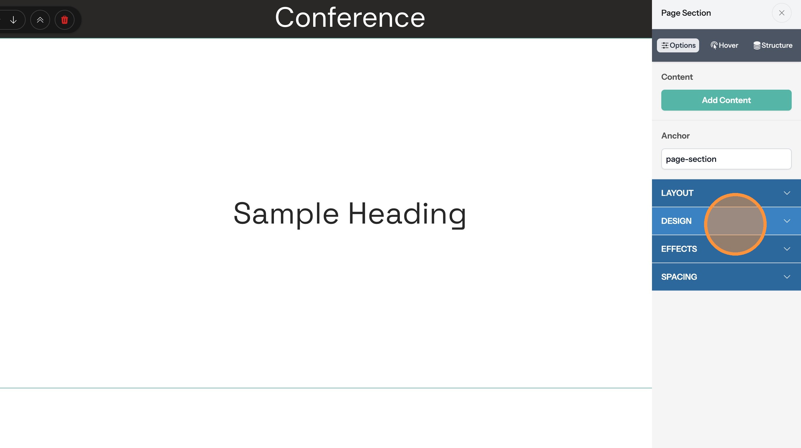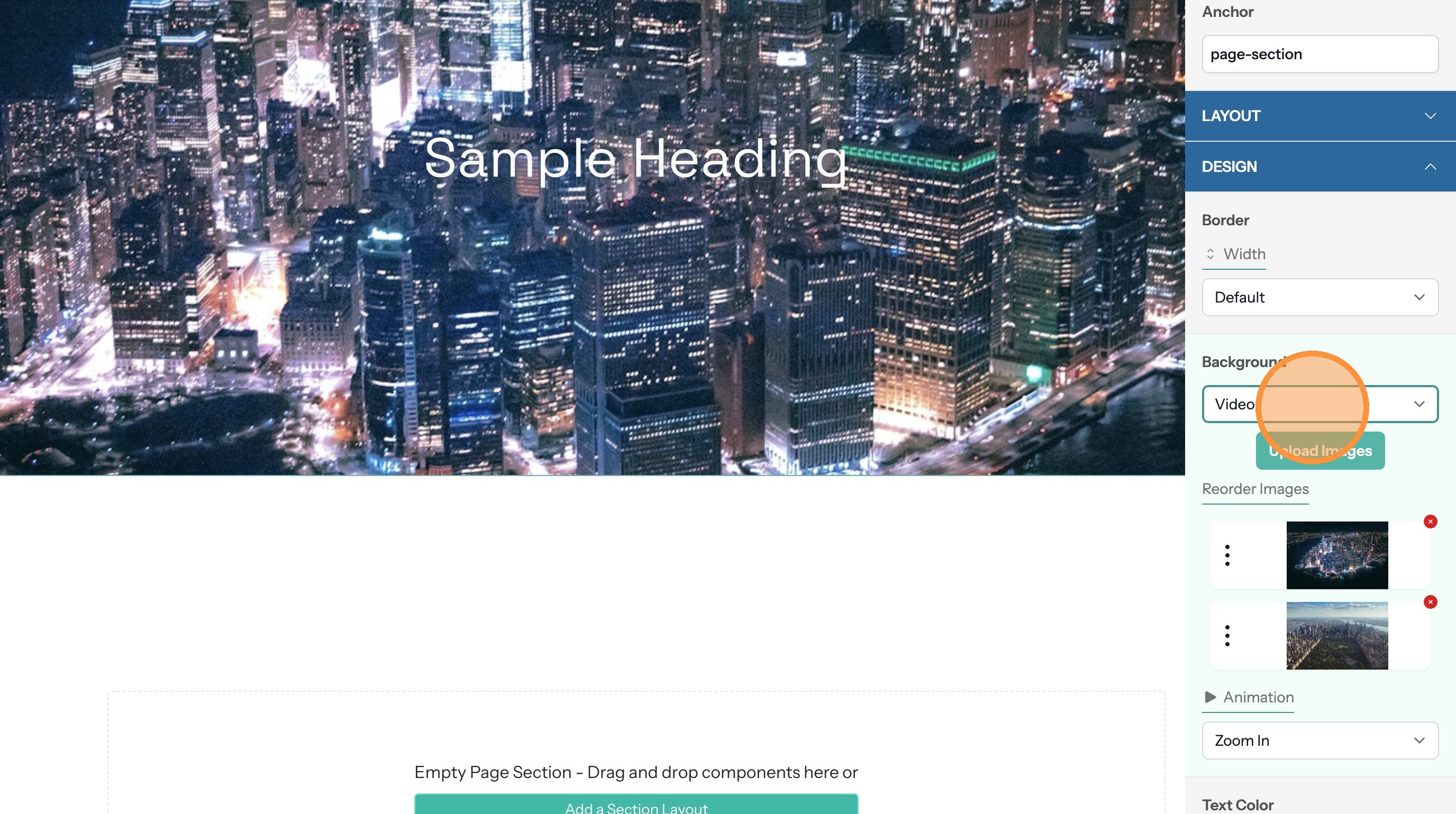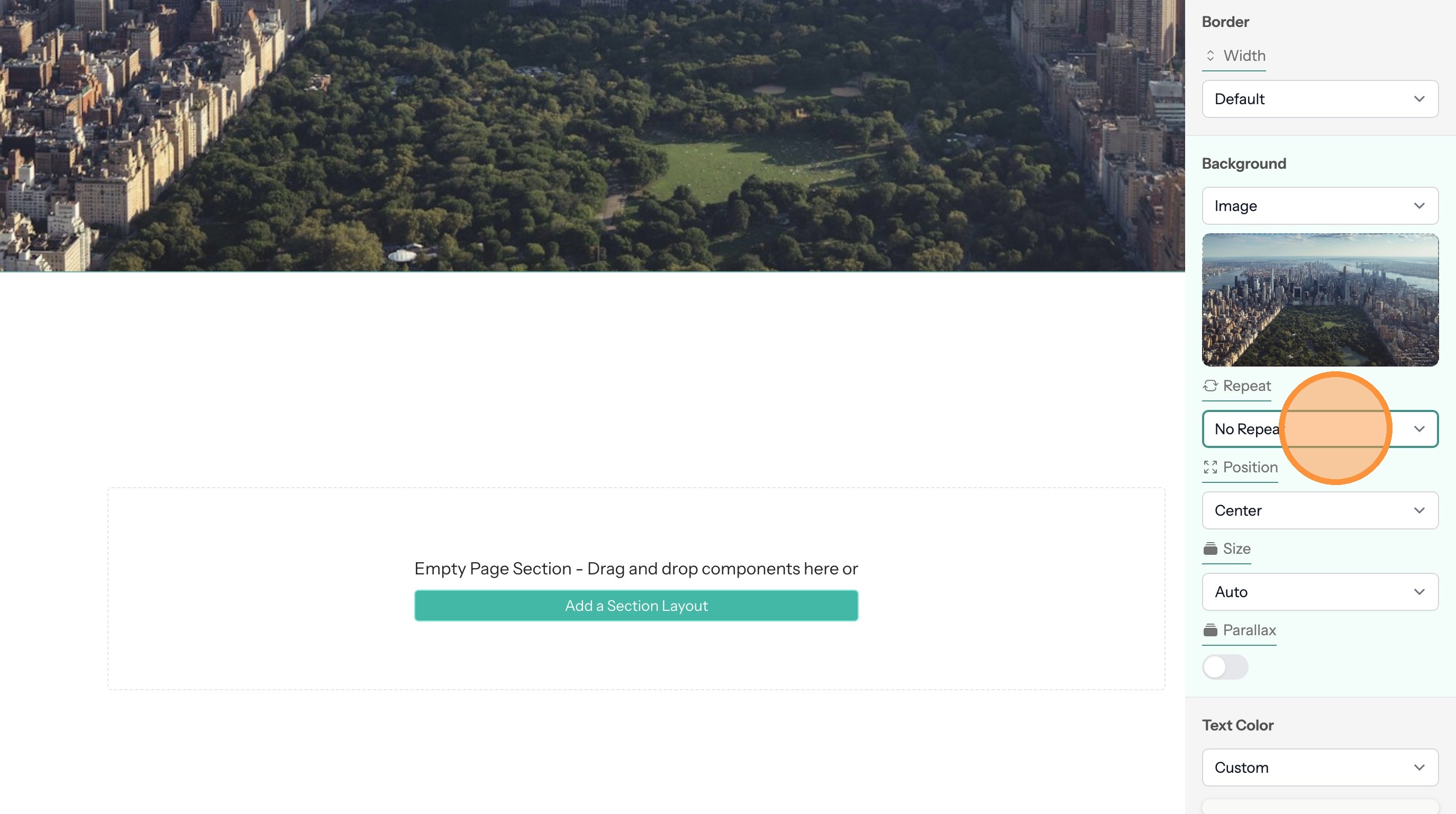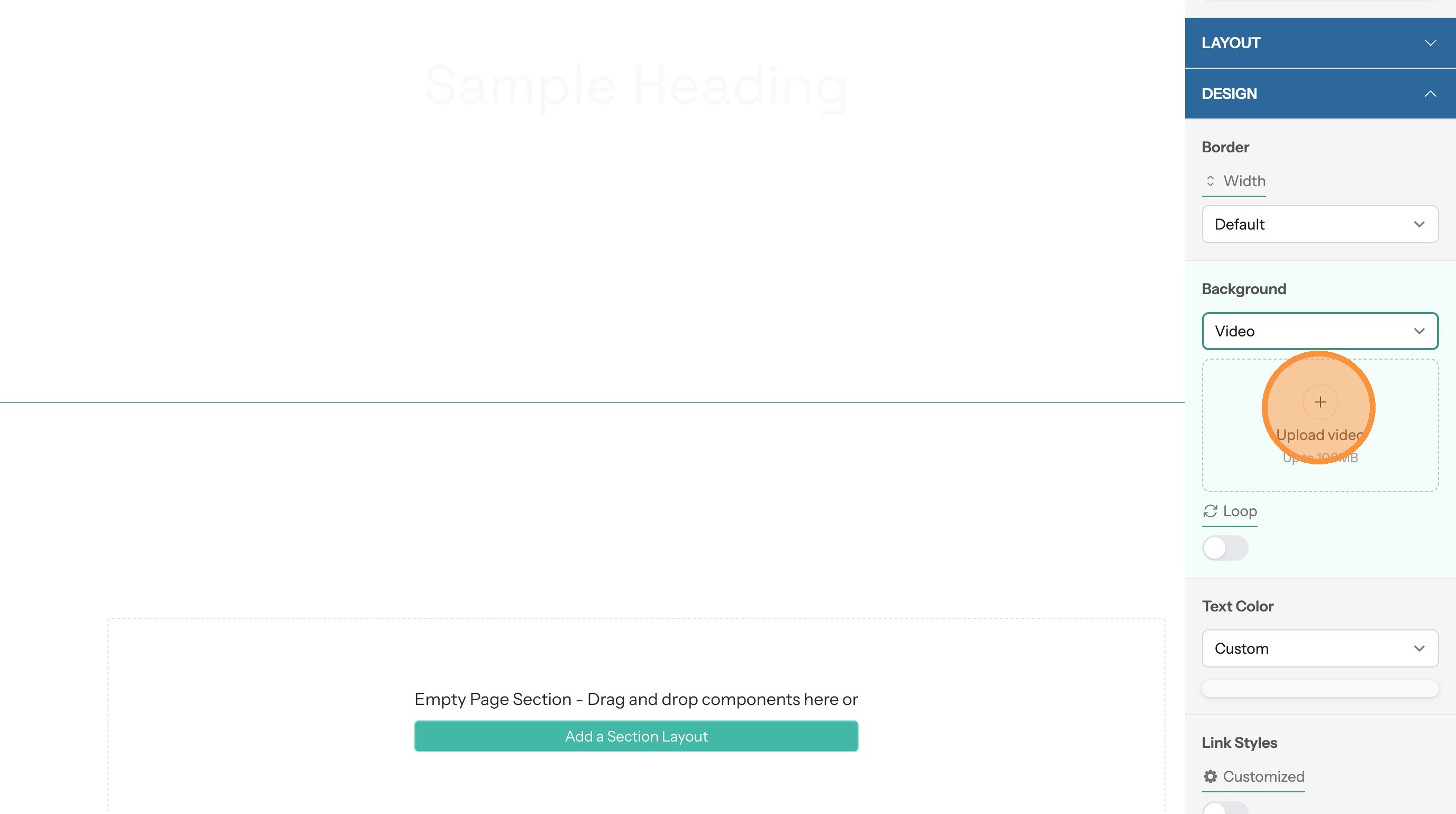 5. If the section text doesn't contrast with the background color you can change the text color here