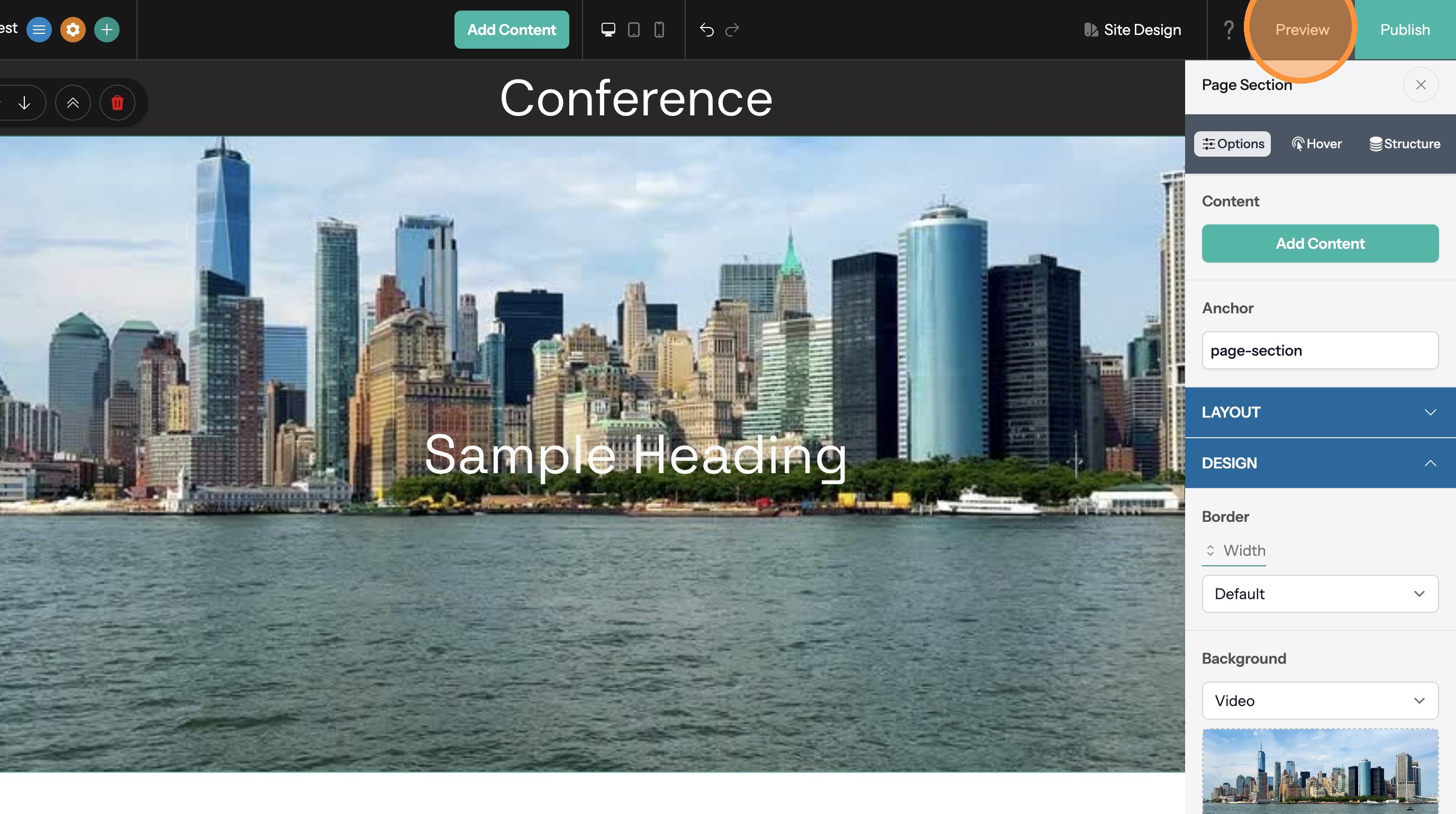 25. The video will not run while in the site editor in order to minimize distractions. Click "Preview" to see the video in action.
