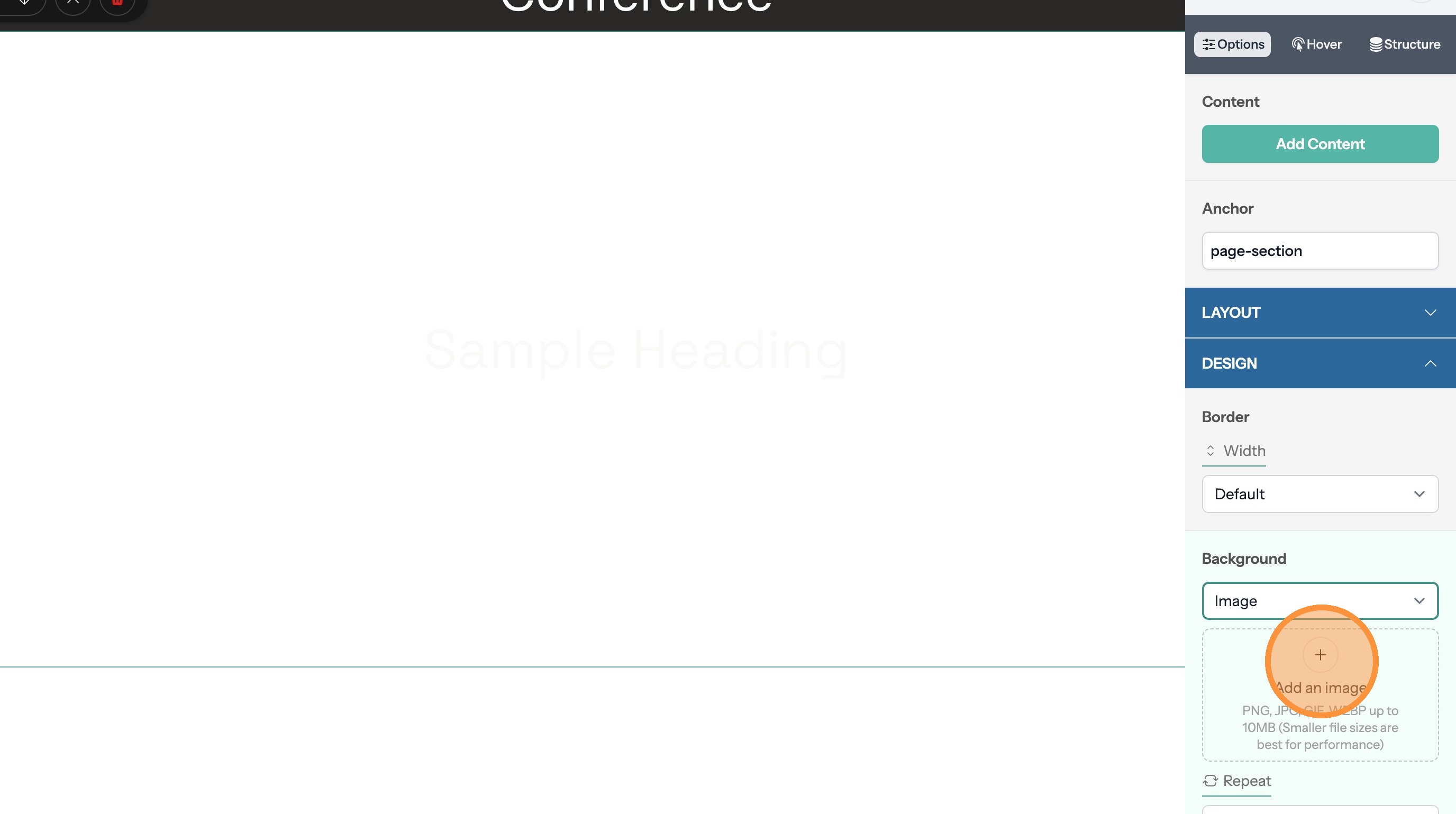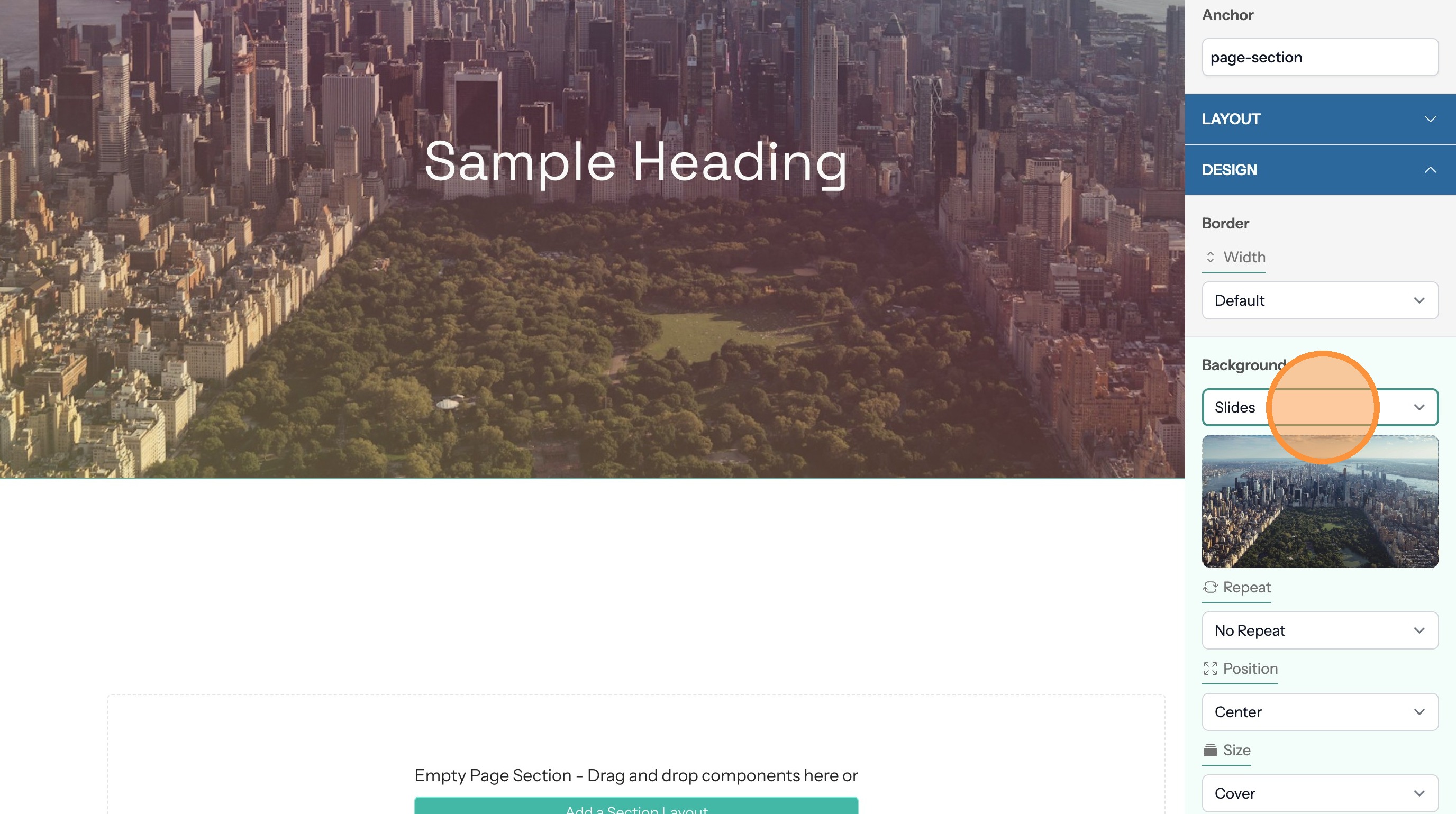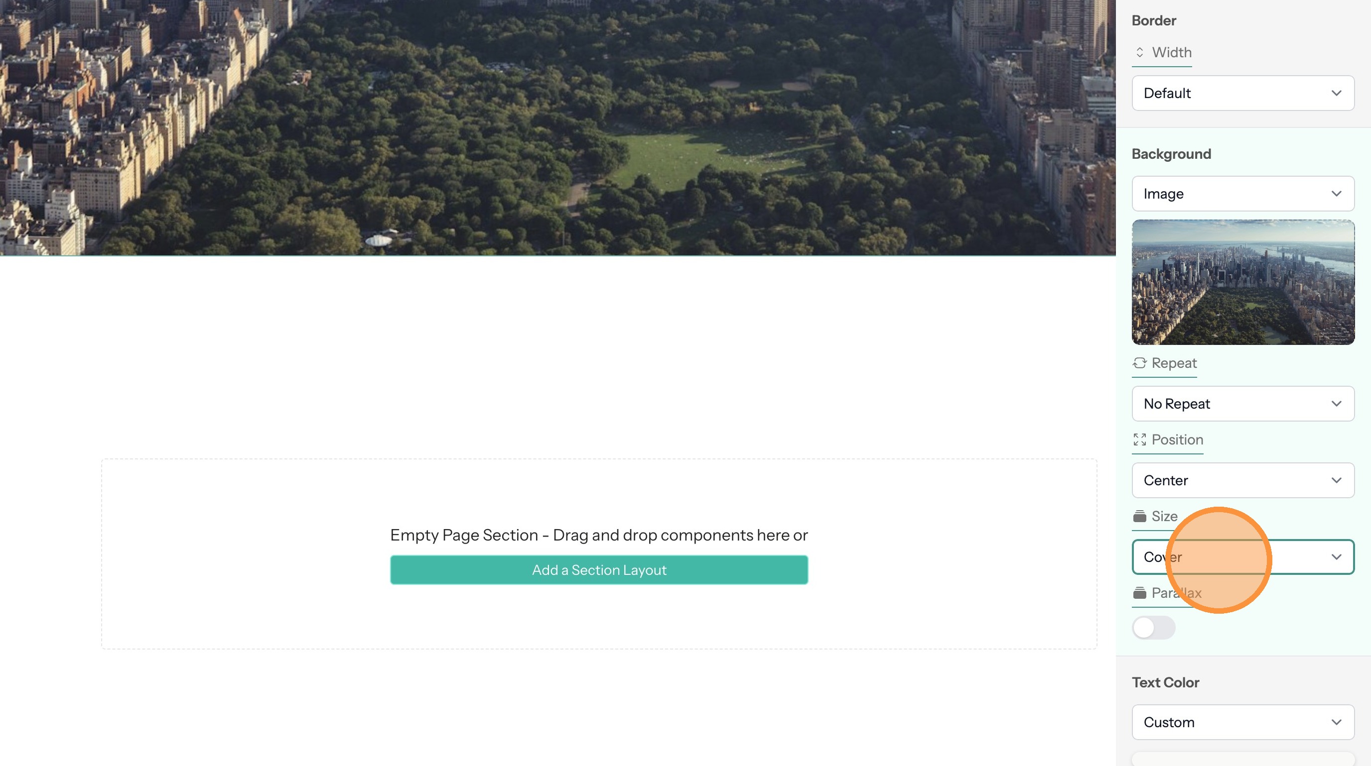 14. Use this option to determine the image size. The "Cover" value will have the image fill the full space