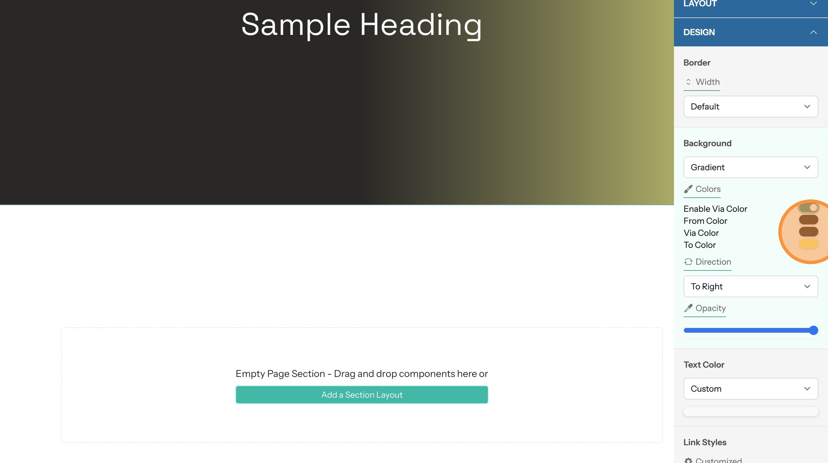 10. Click the "Enable Via Color" toggle to add a third color to the gradient
