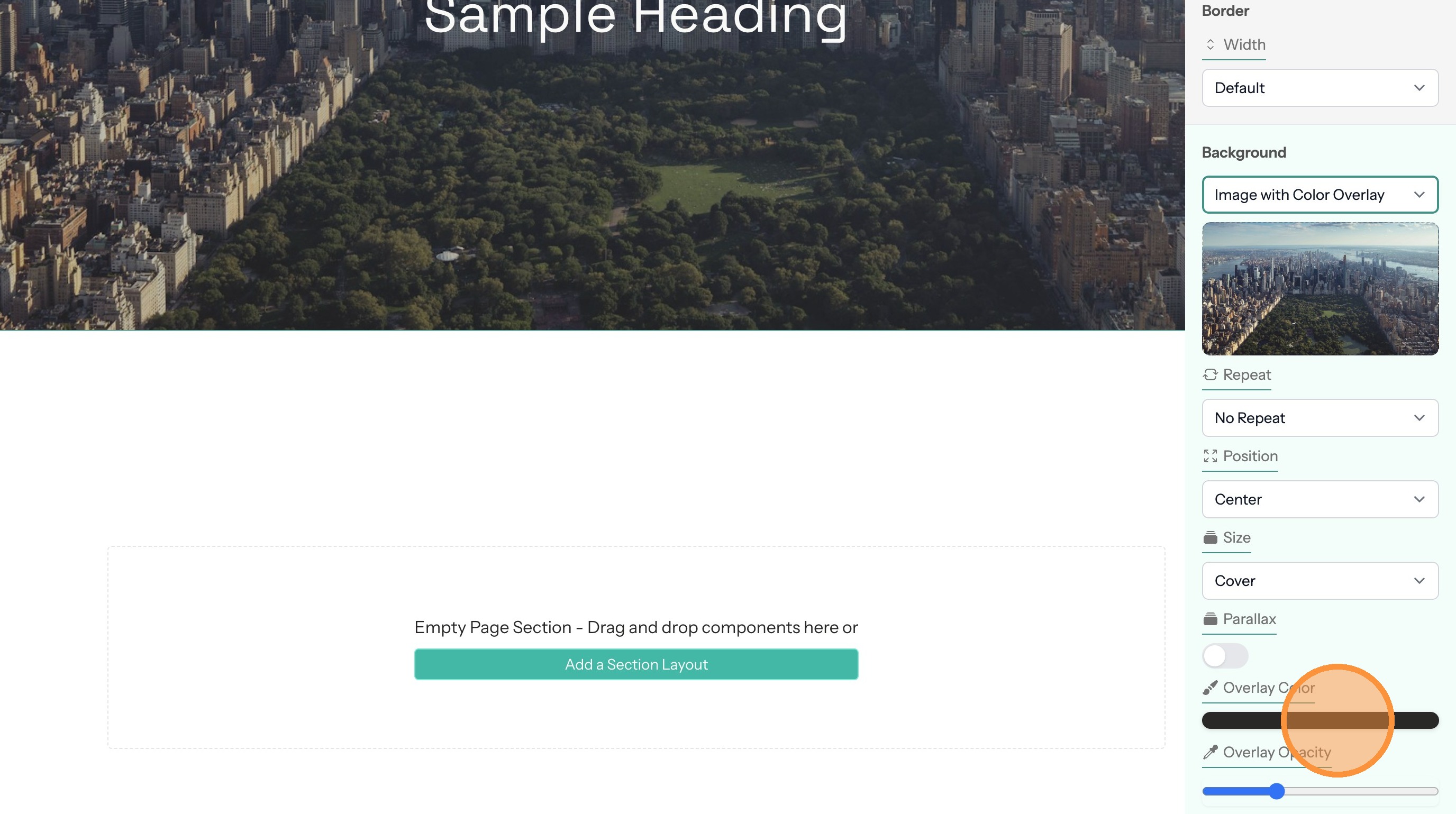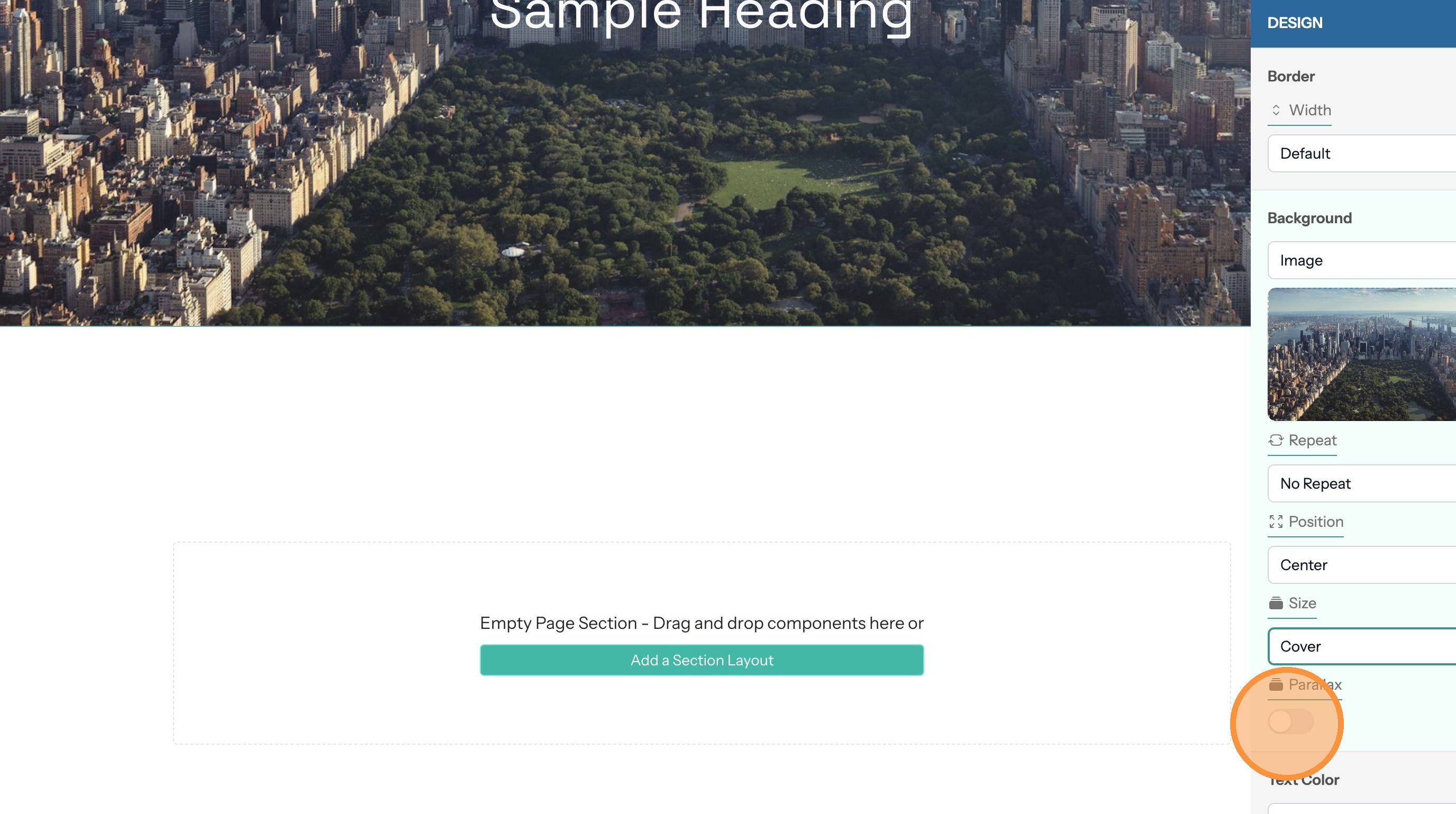 15. Enabling the parallax option will hold the image in place when the page scrolls