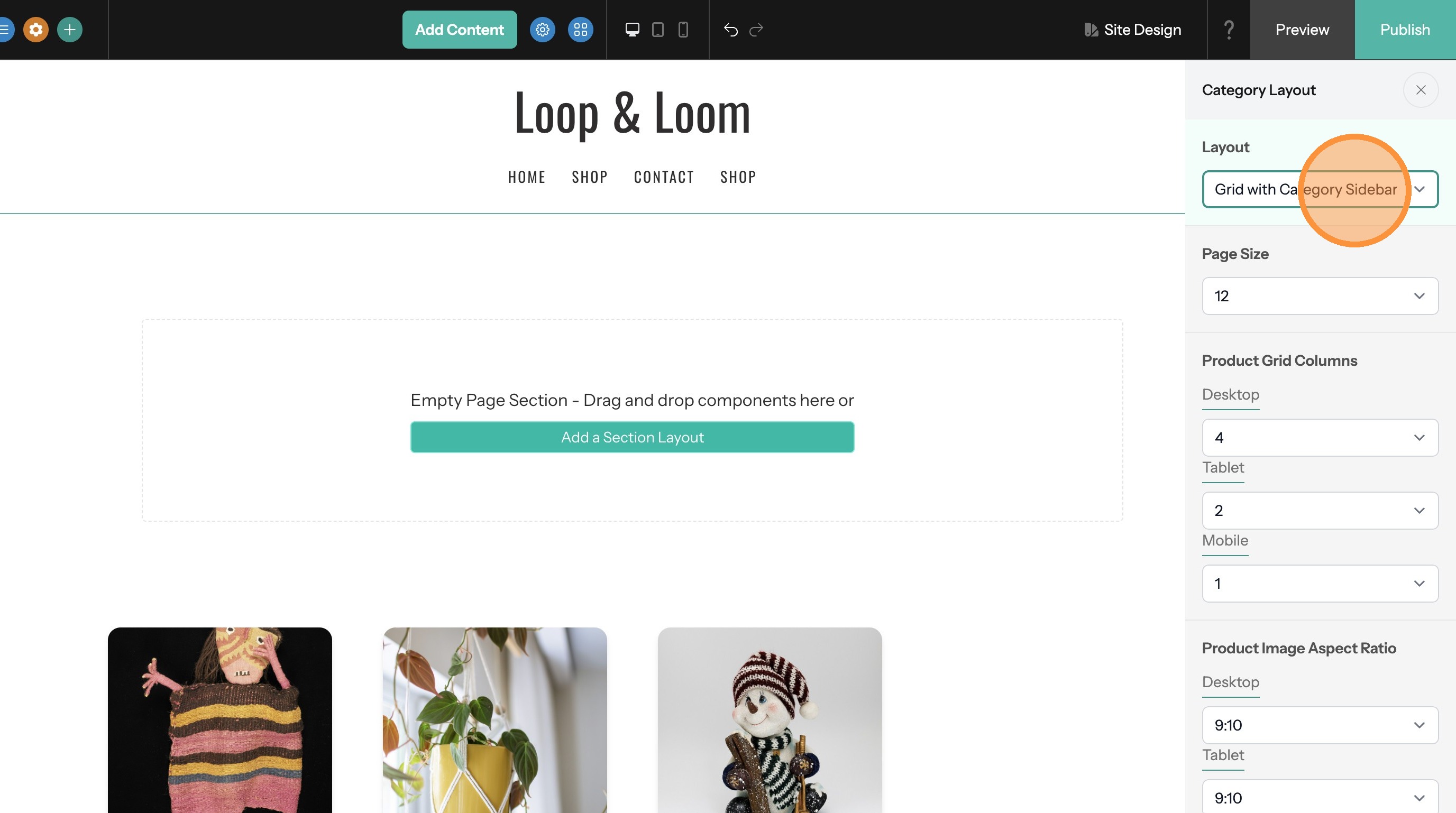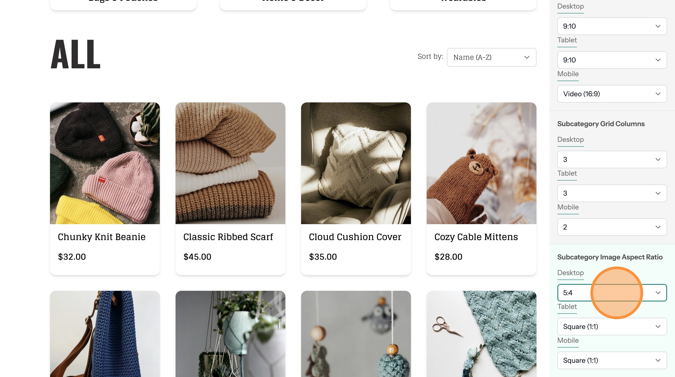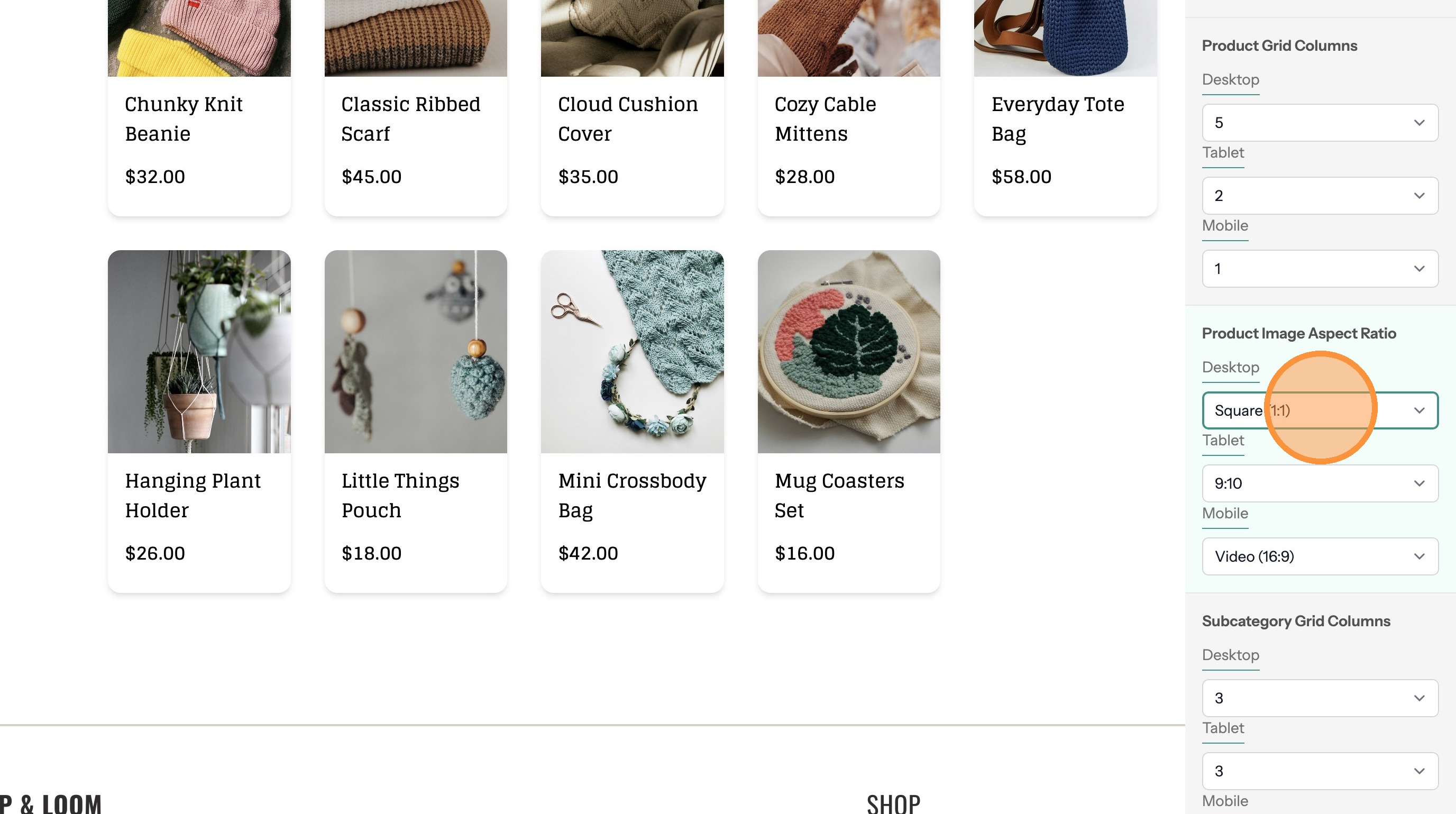 17. Make changes to the Product Image Aspect Ratio option. This changes the size and shape of the product images.