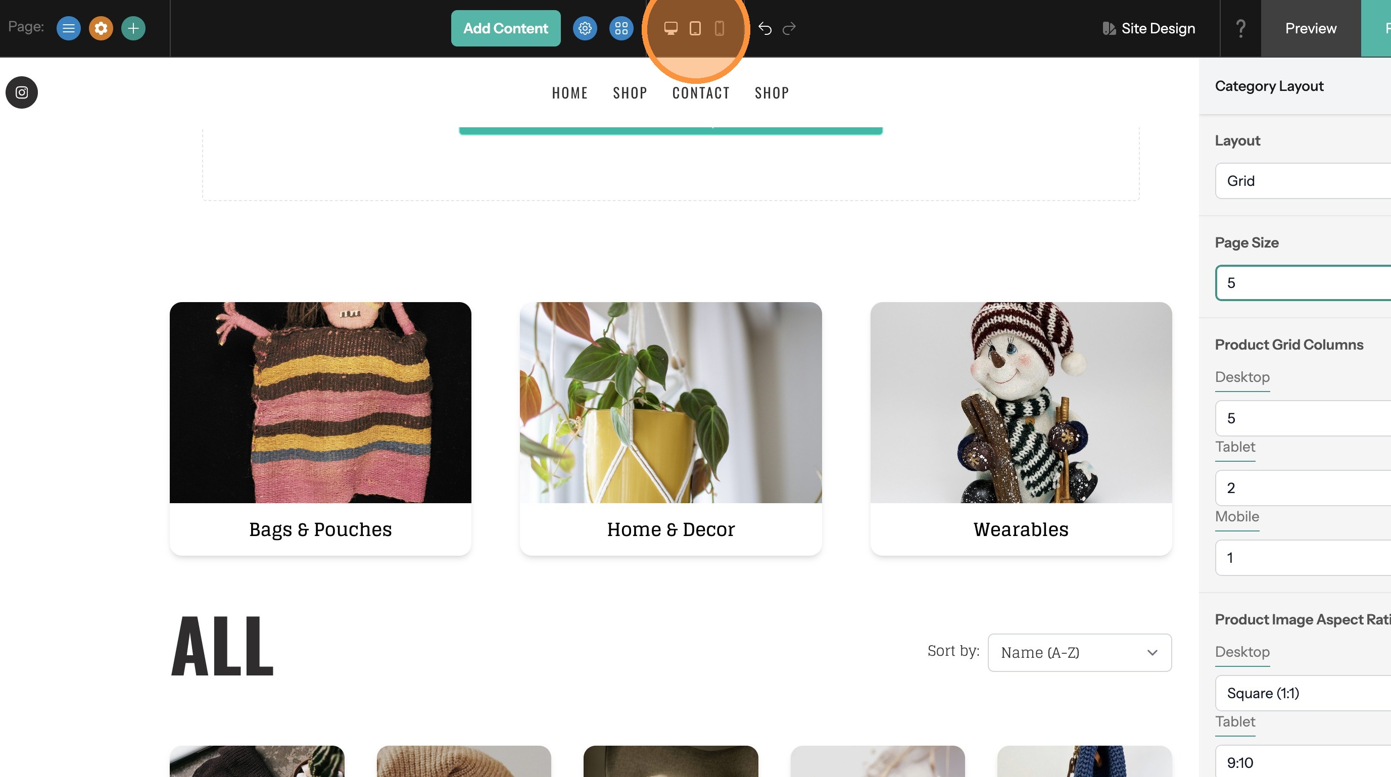 18. Use the device type switcher to see how the page will look on different devices.