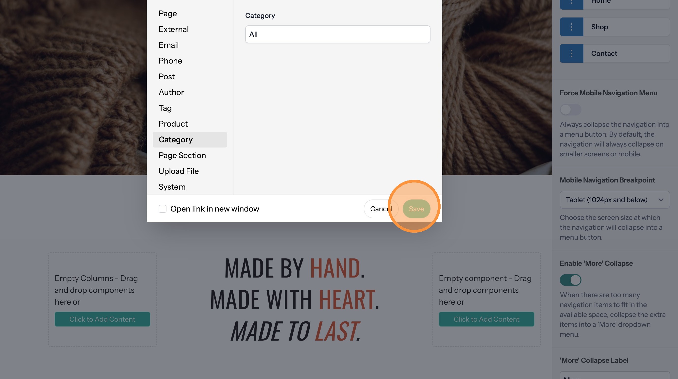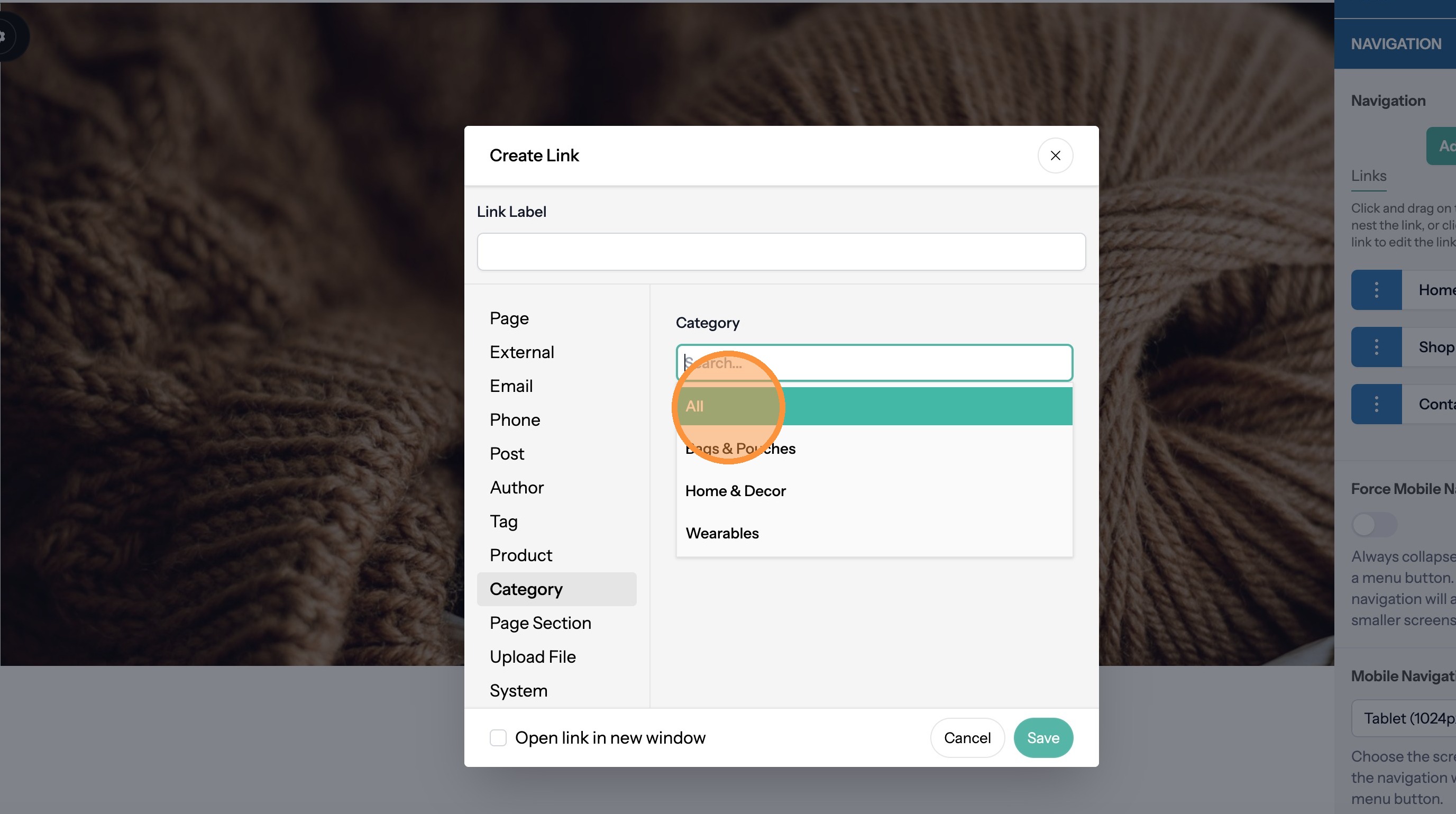 Add a Navigation Link to a Category Page