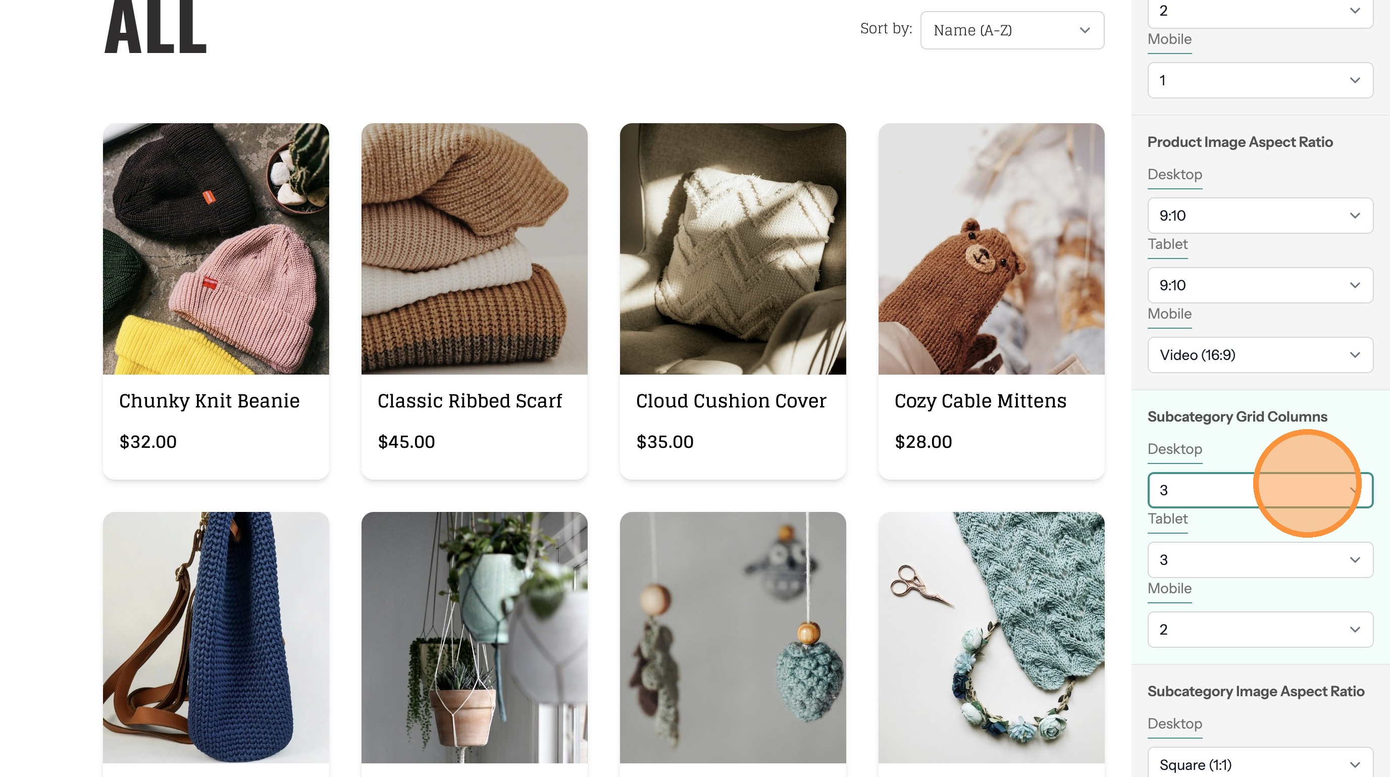 16. Make changes to the Product Grid Columns option. This determines how many products will show in each row.