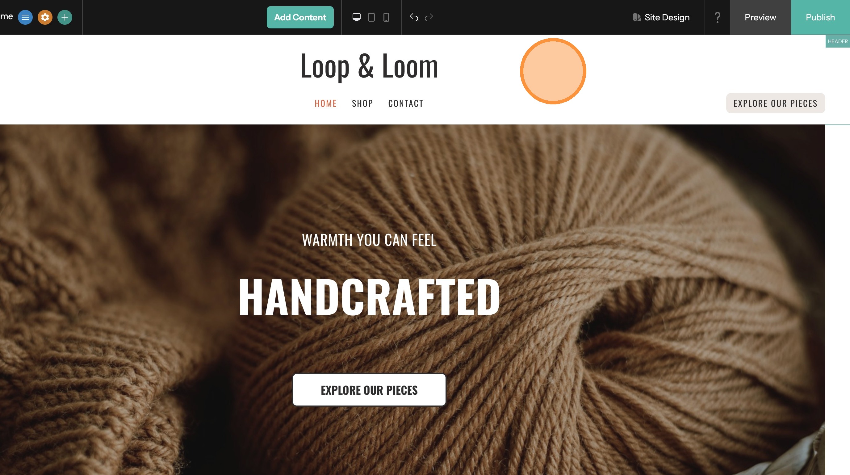 3. Click on the header