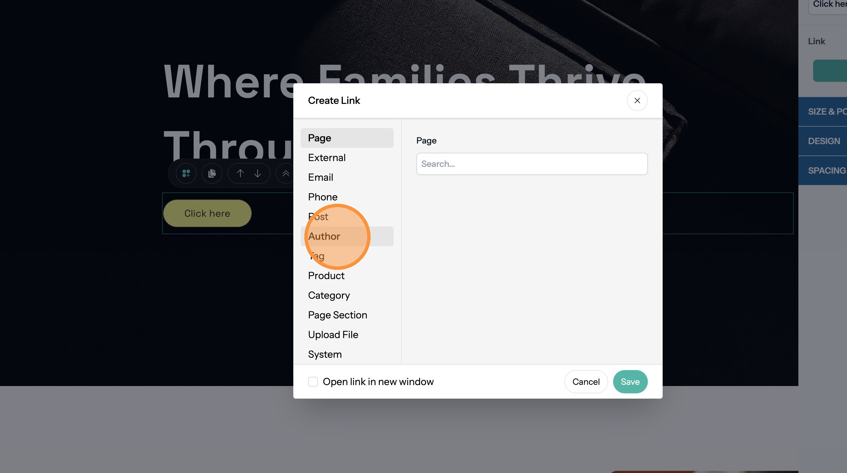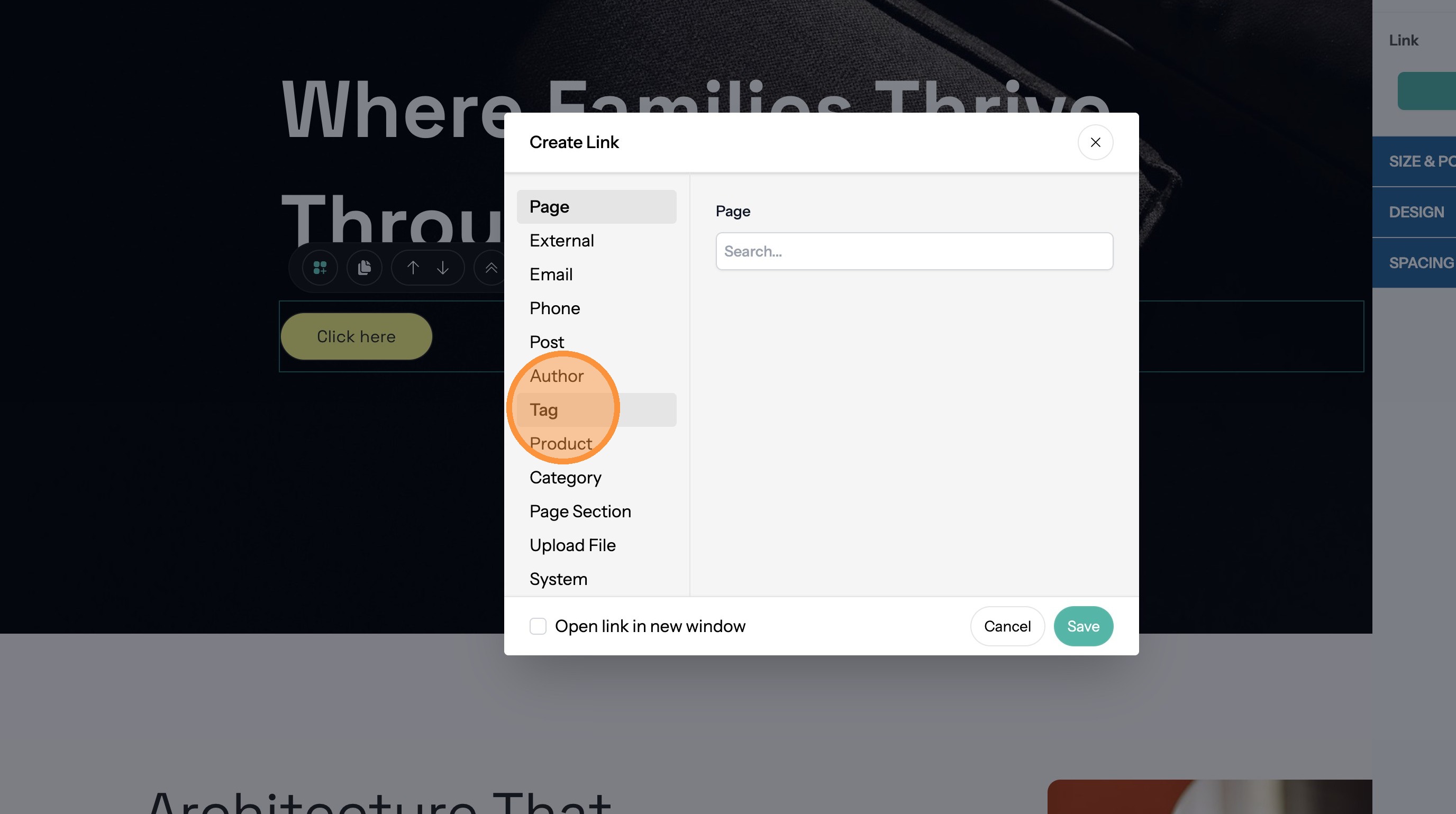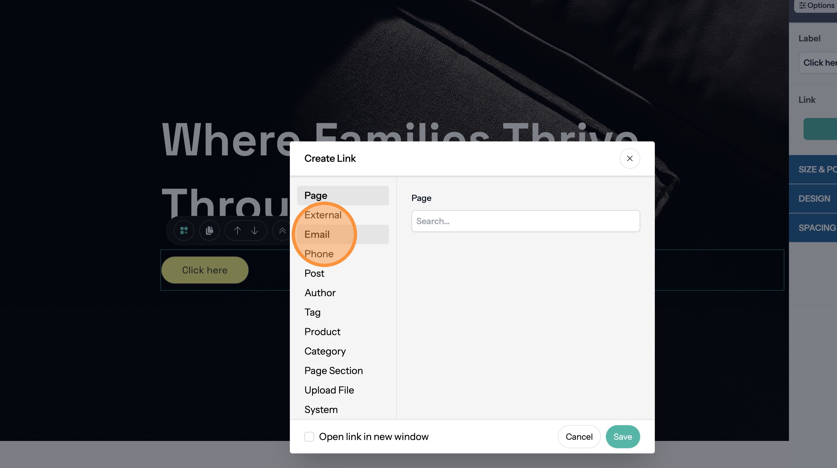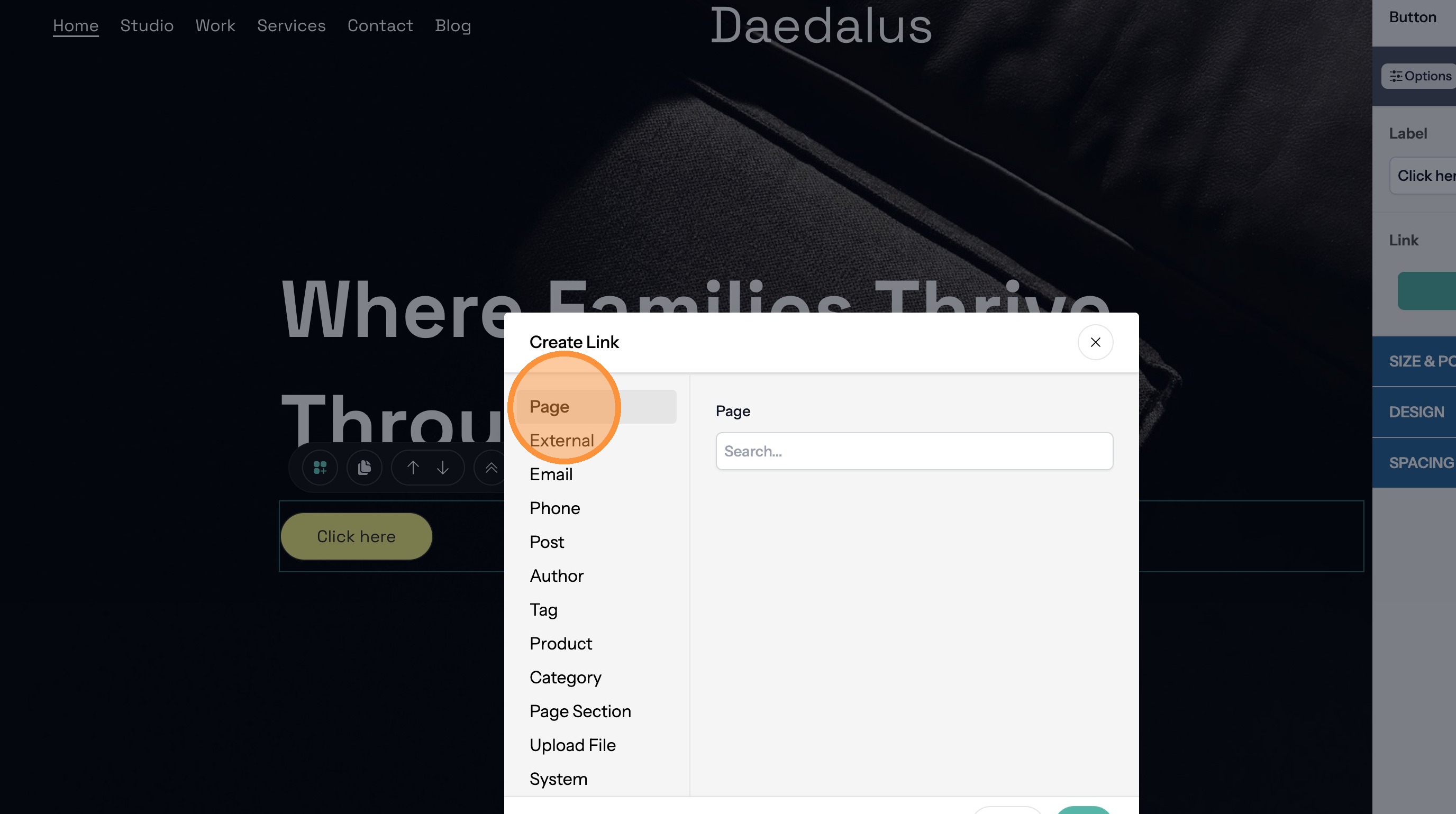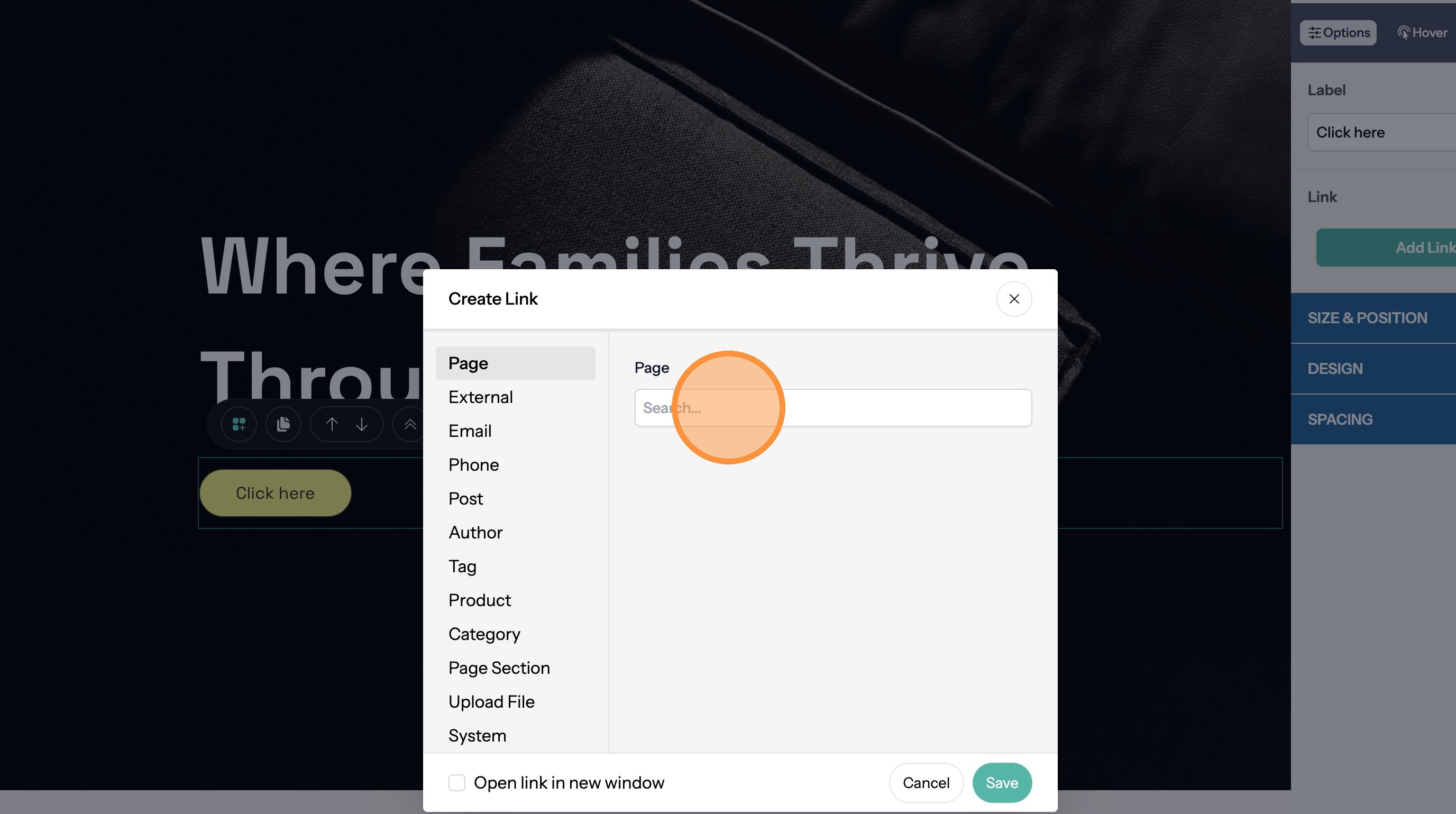 Tip: It's helpful to first name your page sections to make it easier to find the section you want to link to.