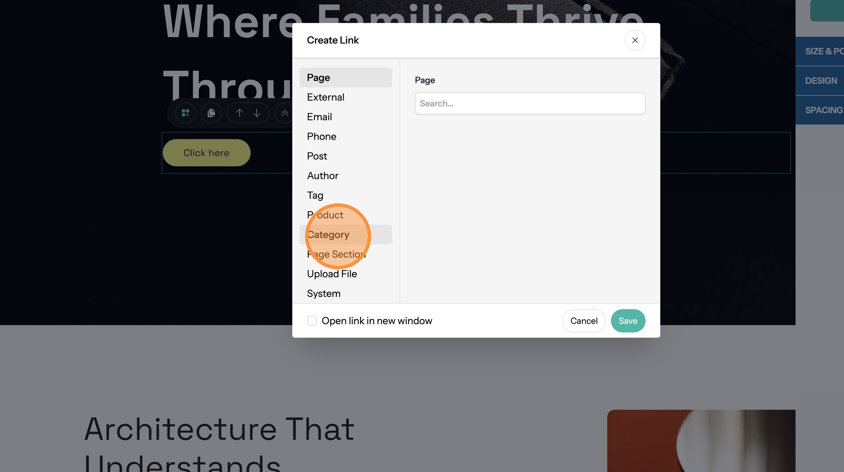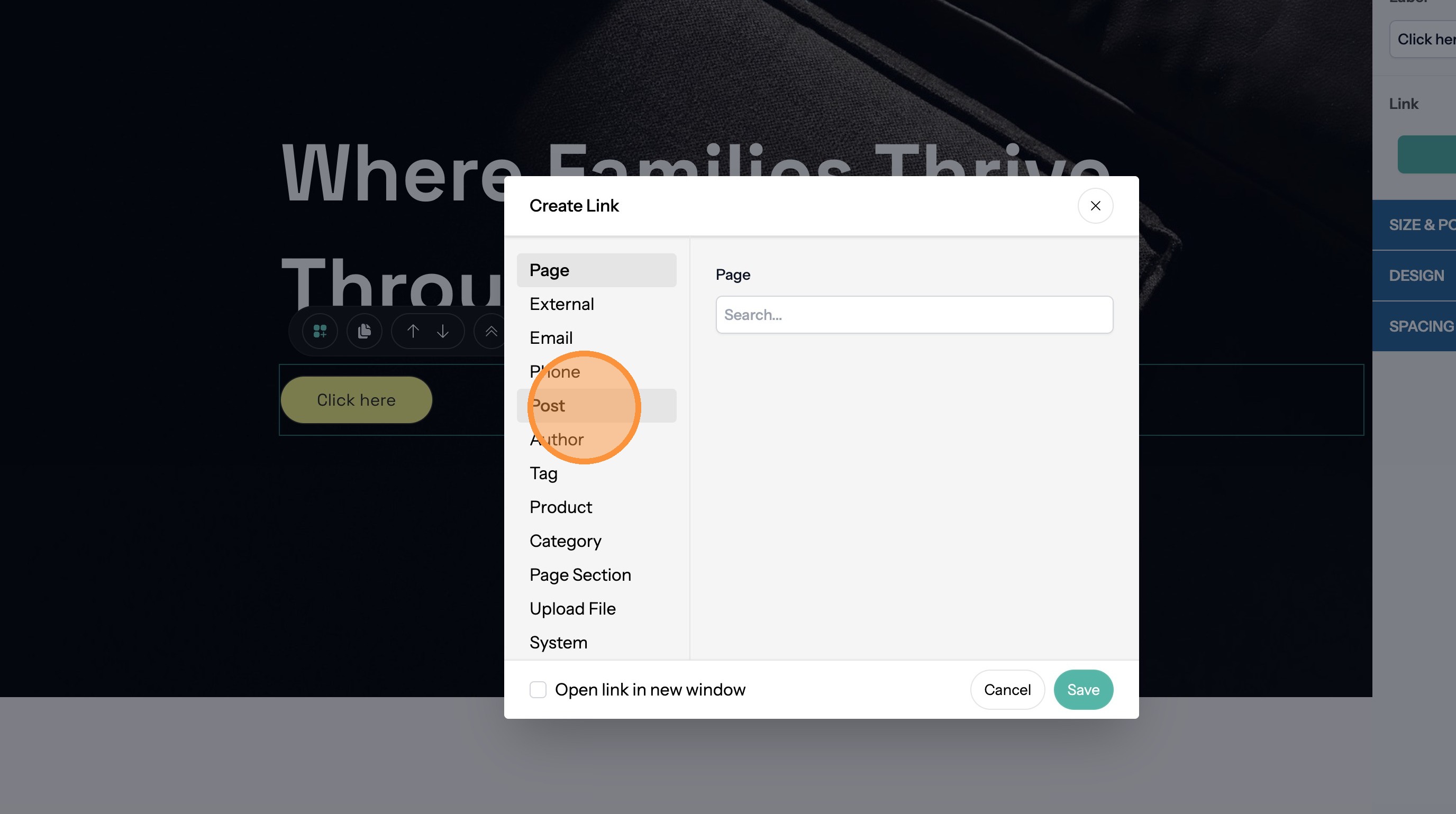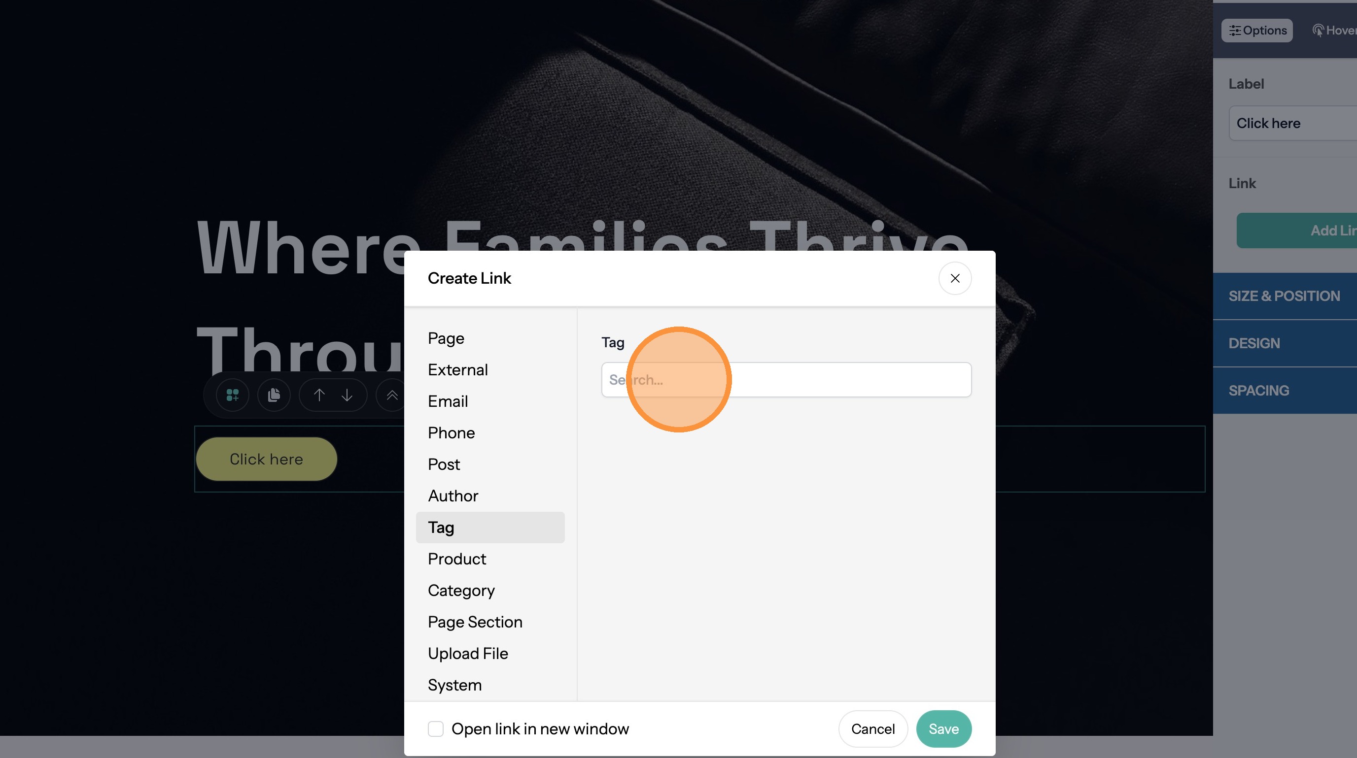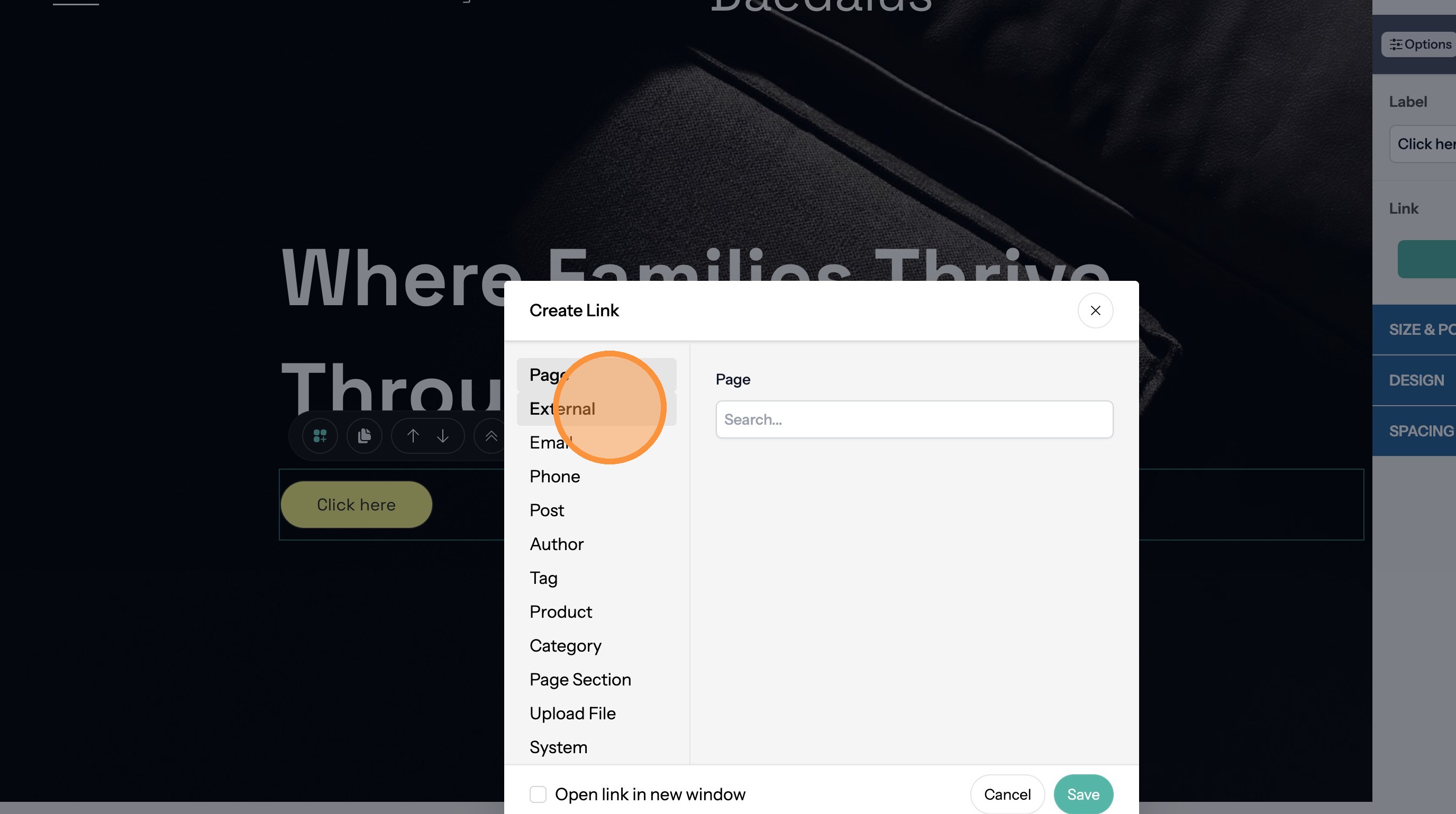 Tip: It's helpful to first name your page sections to make it easier to find the section you want to link to.