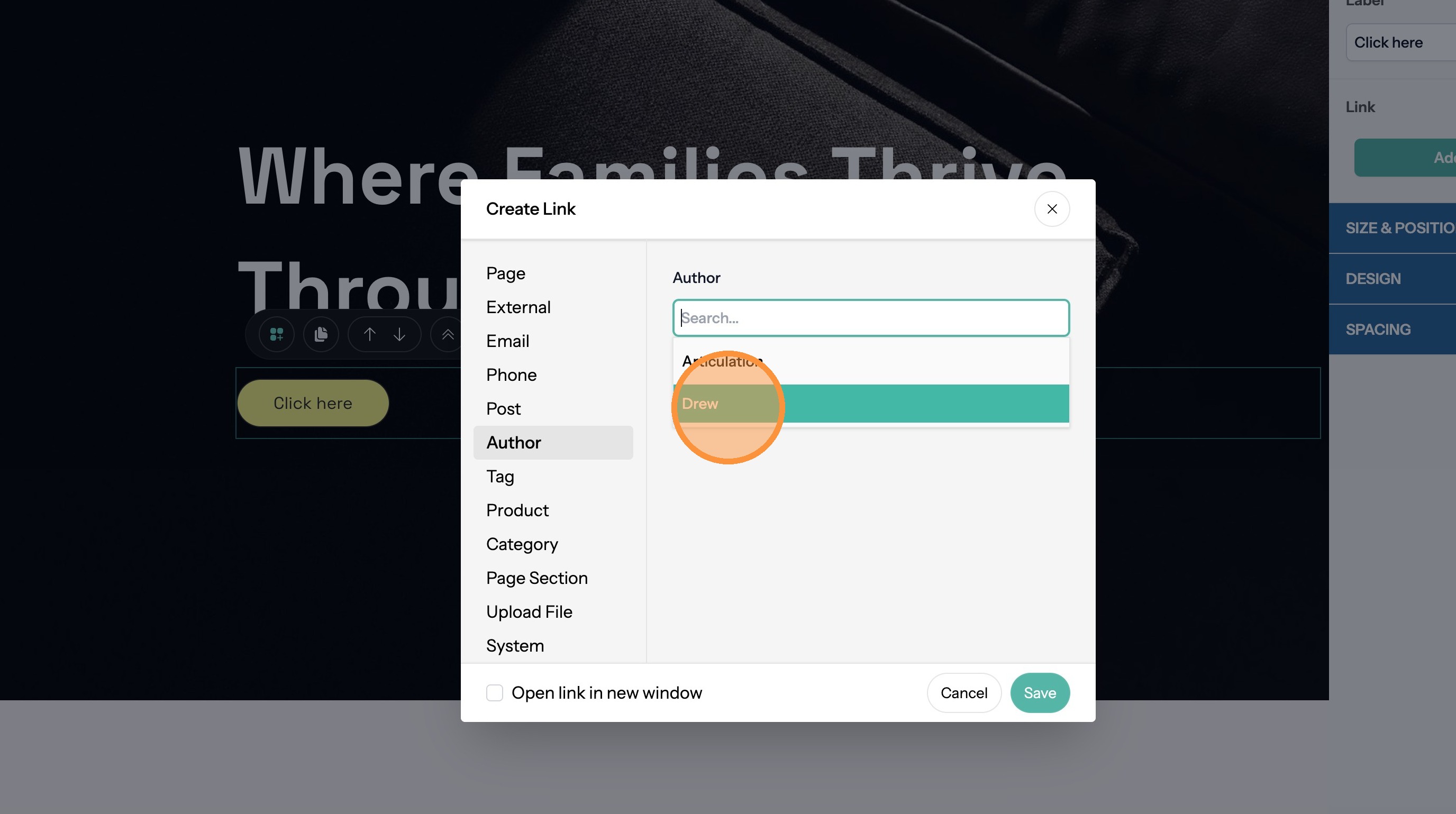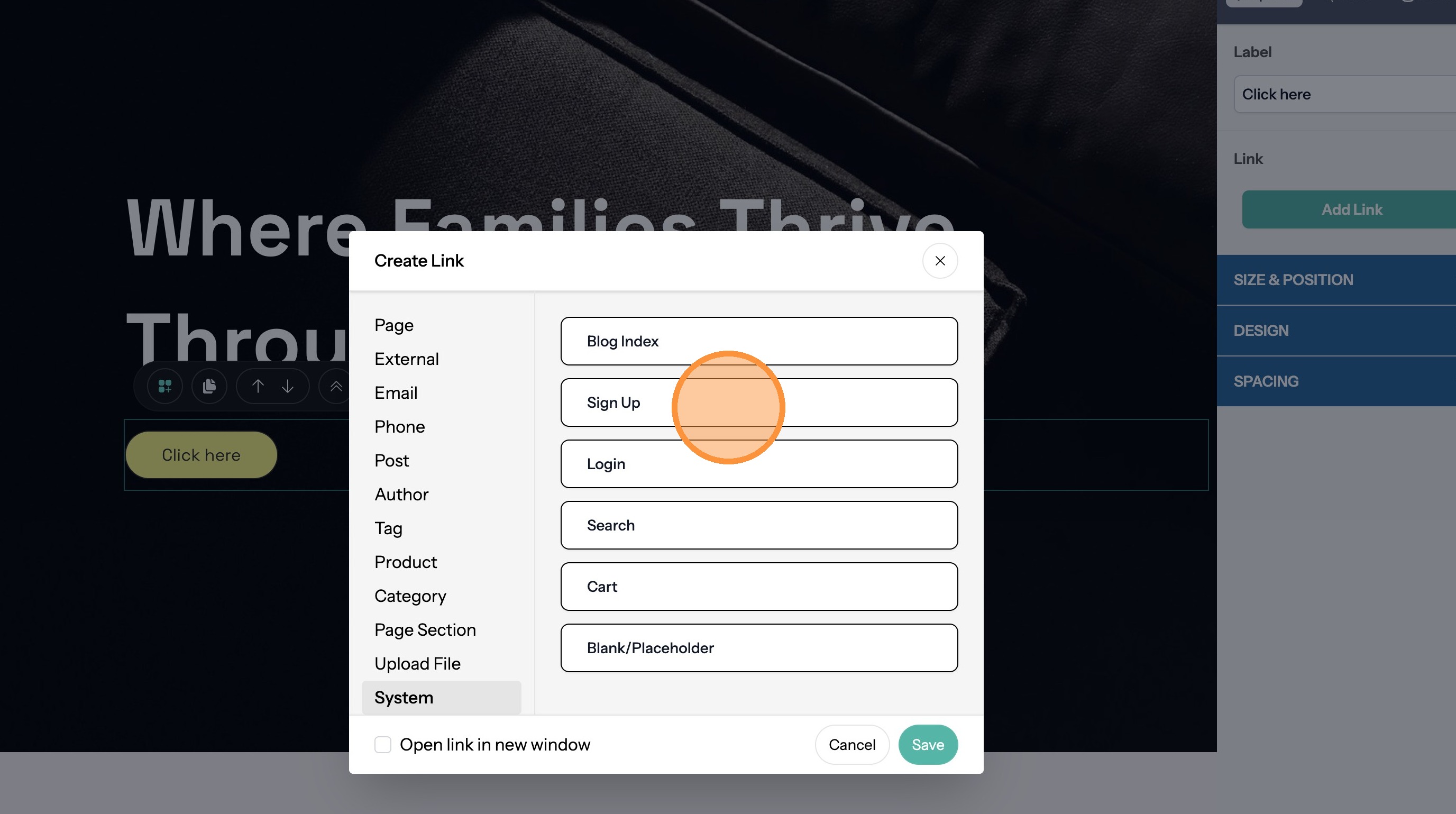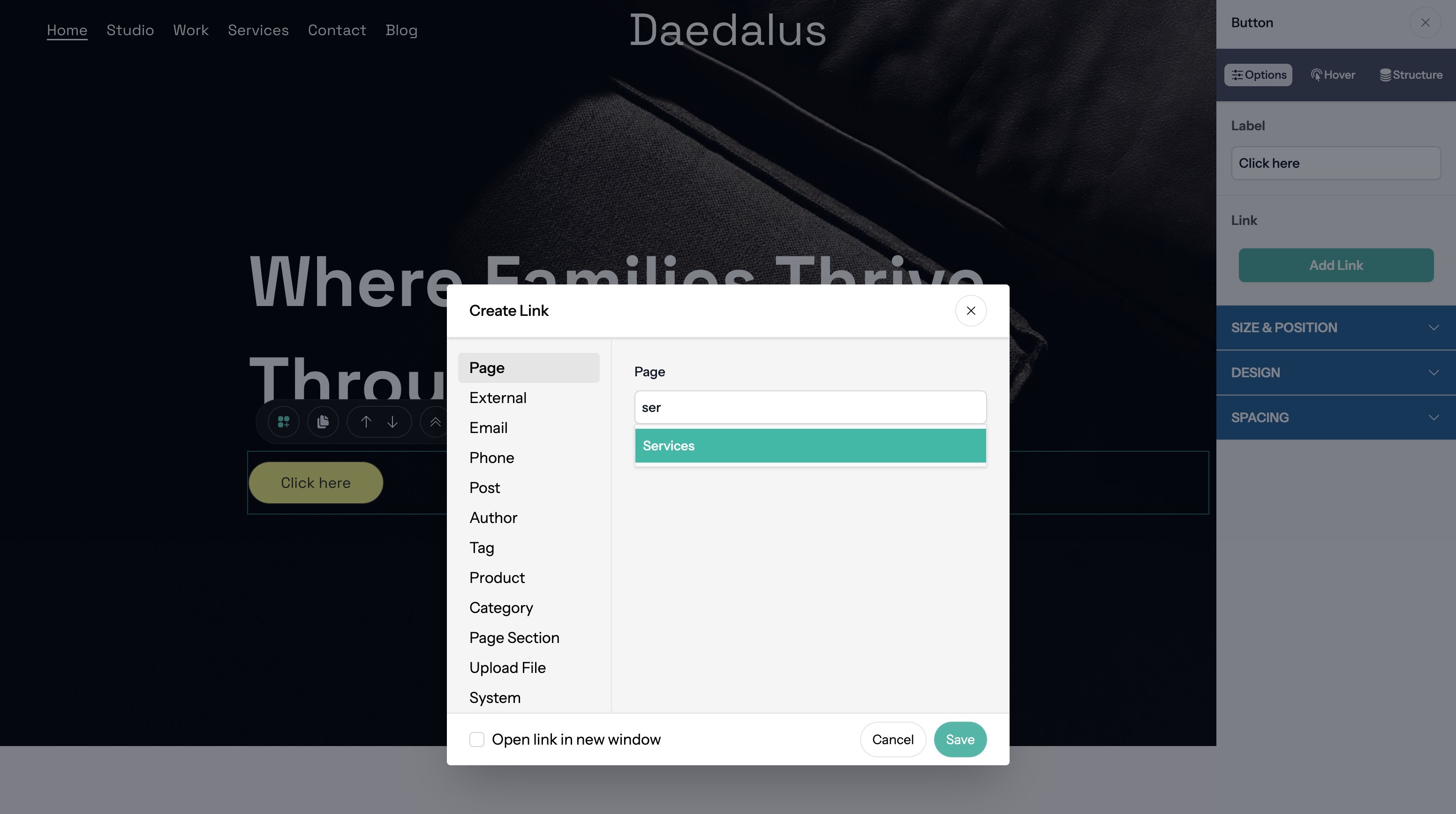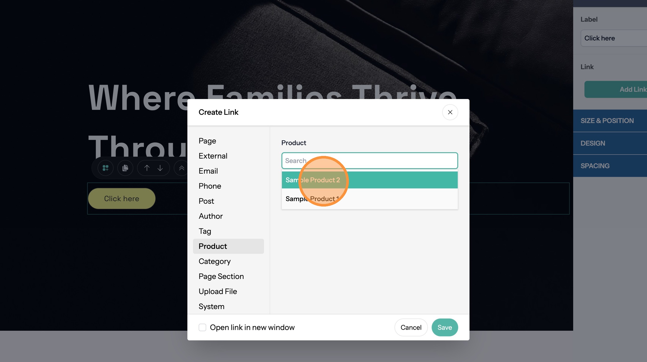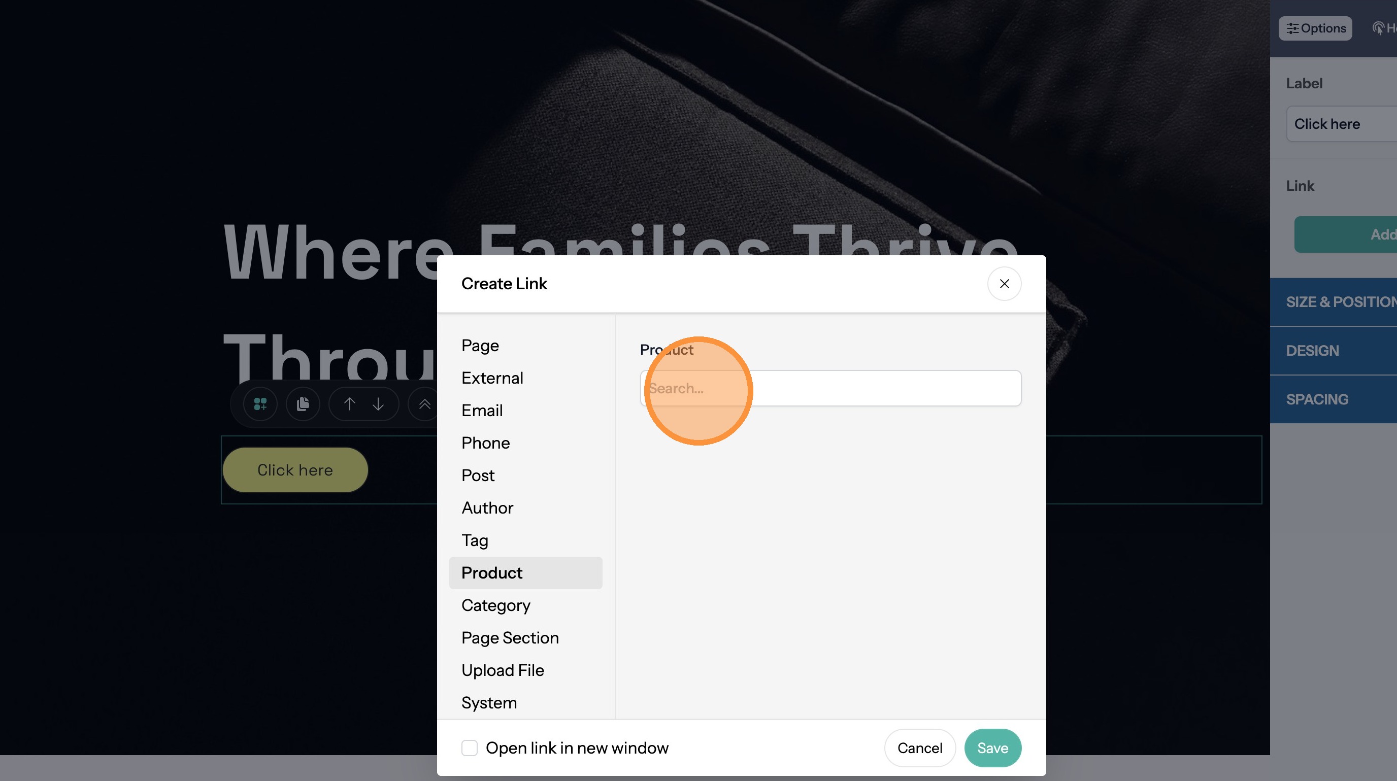 Tip: It's helpful to first name your page sections to make it easier to find the section you want to link to.