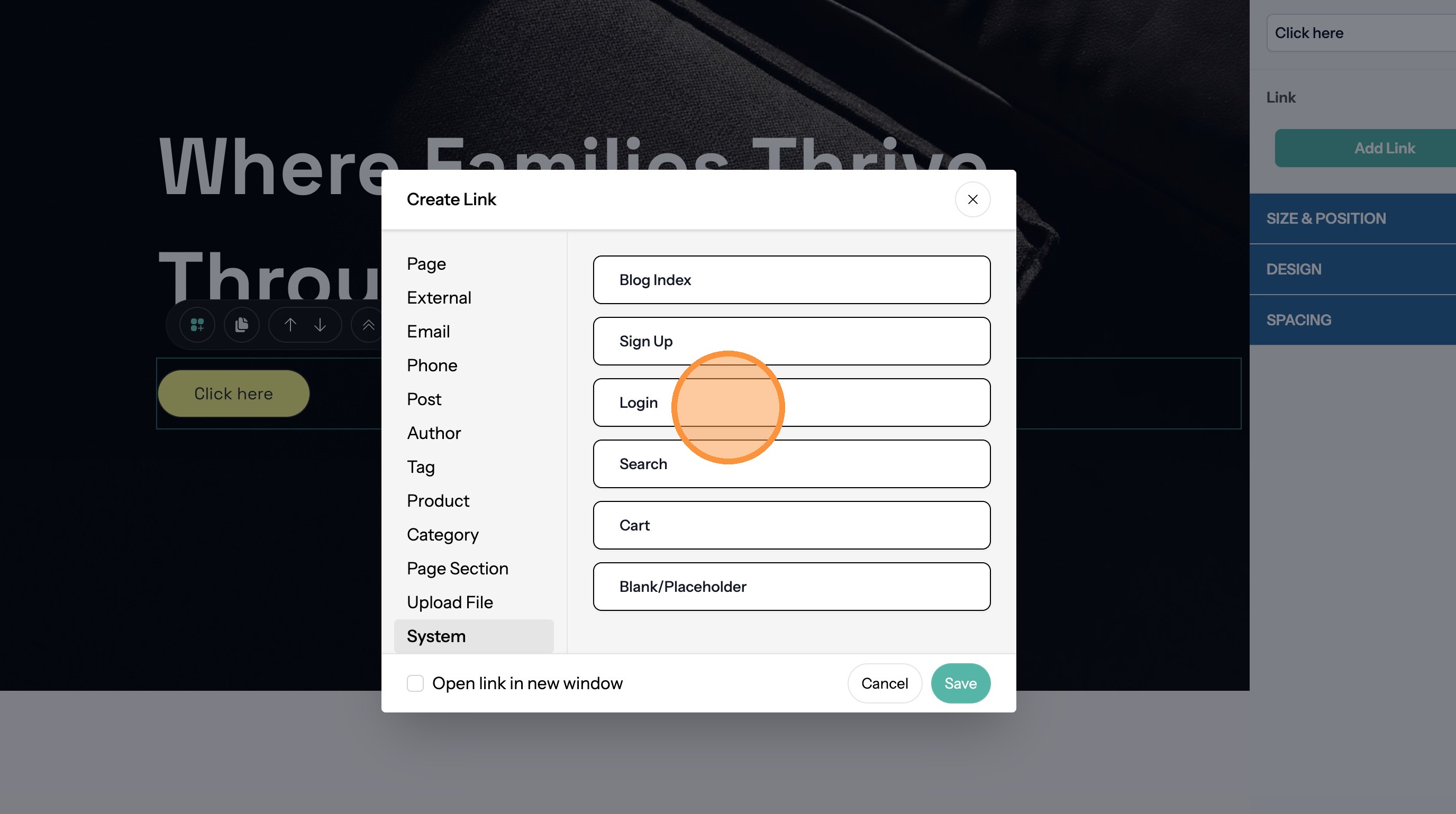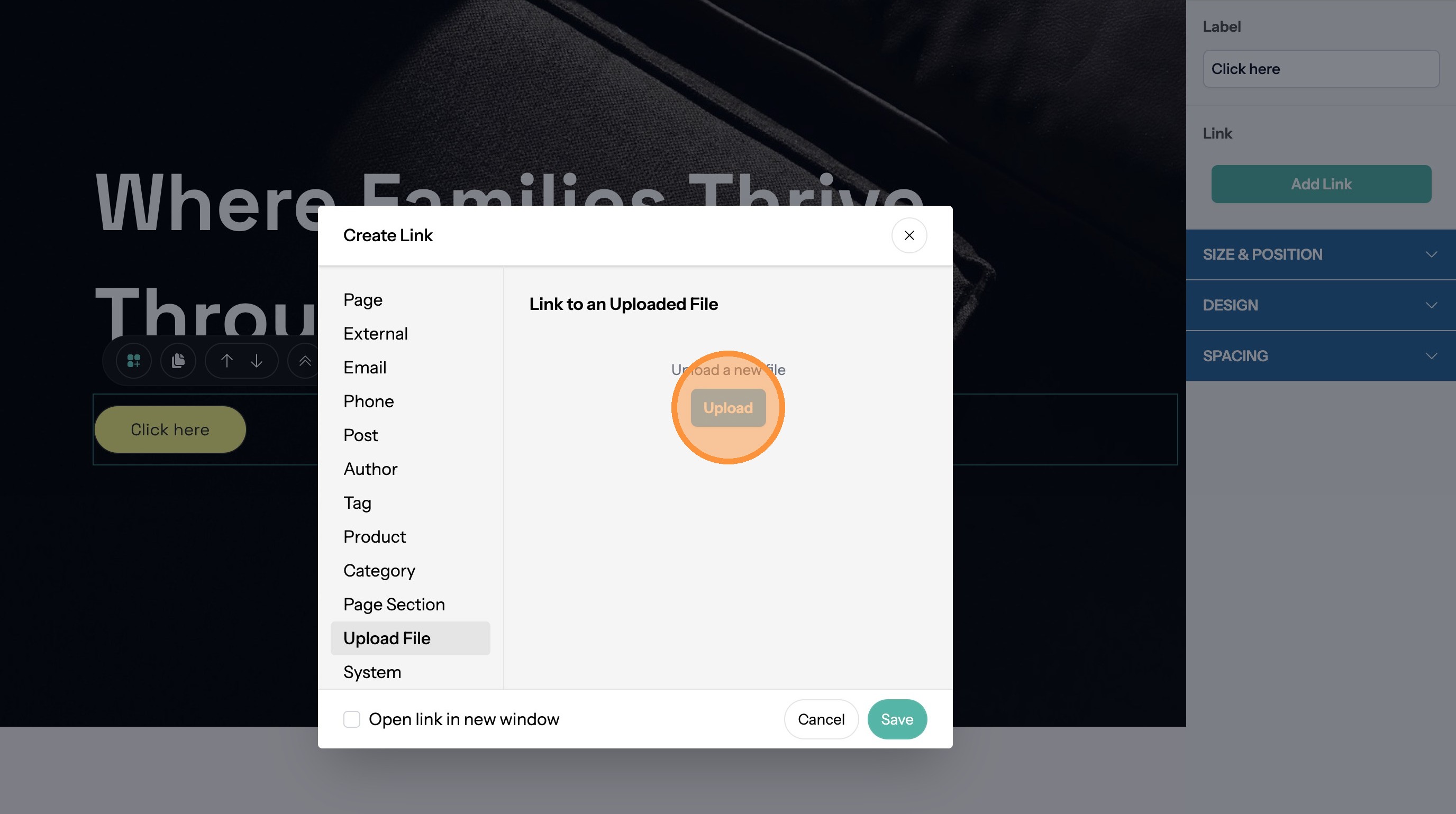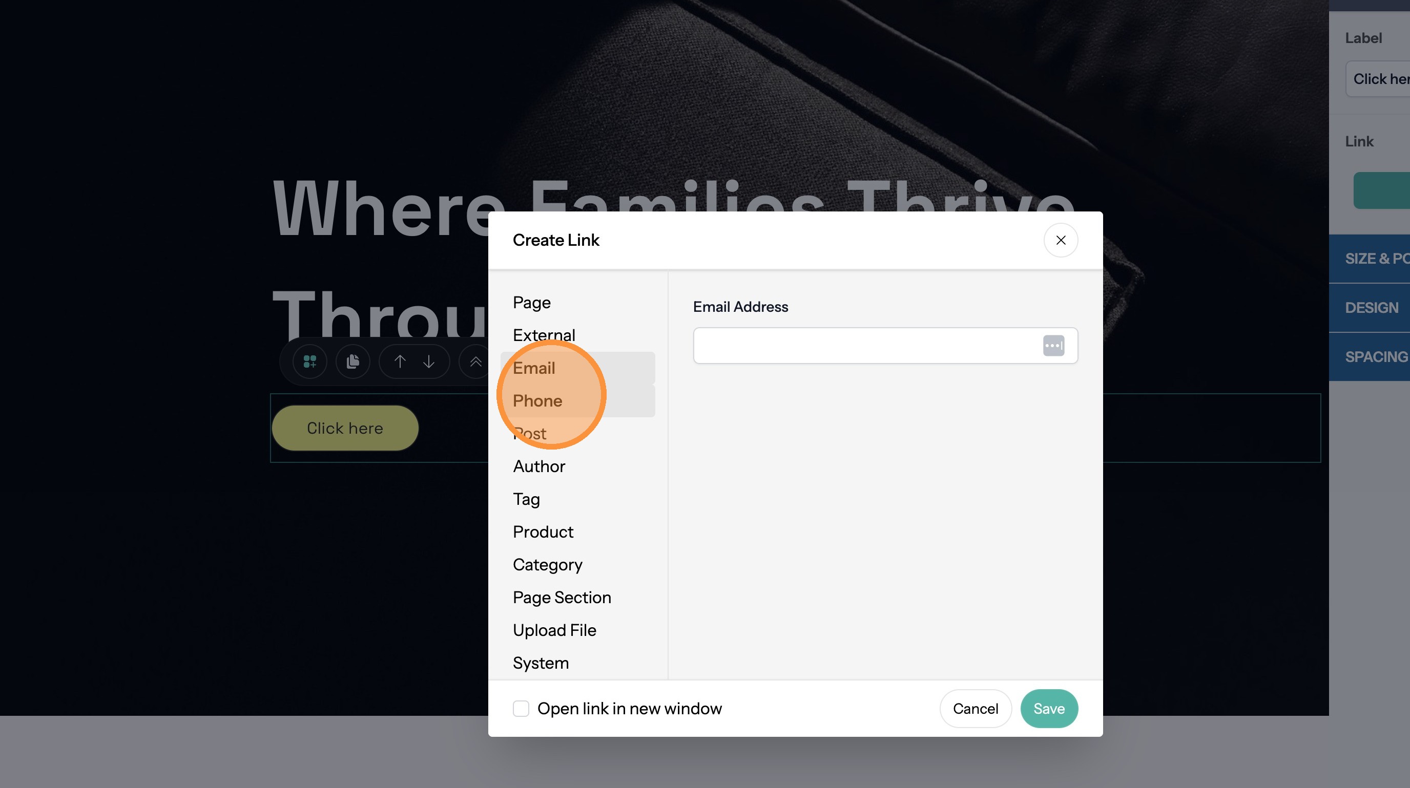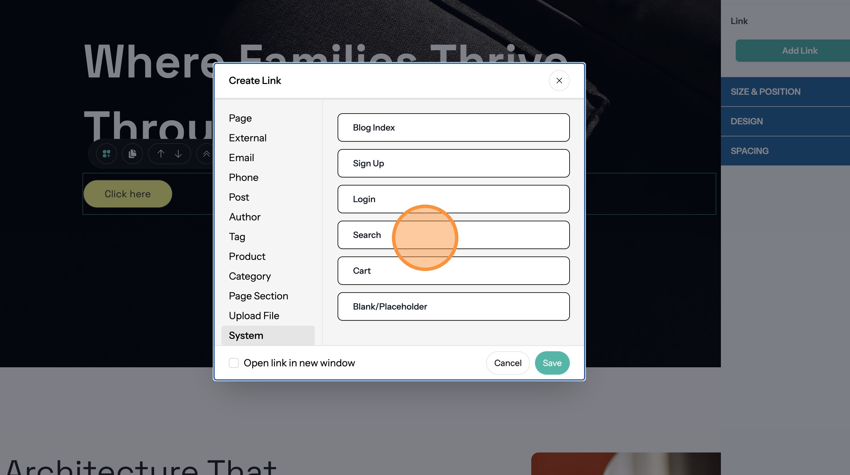 Tip: It's helpful to first name your page sections to make it easier to find the section you want to link to.