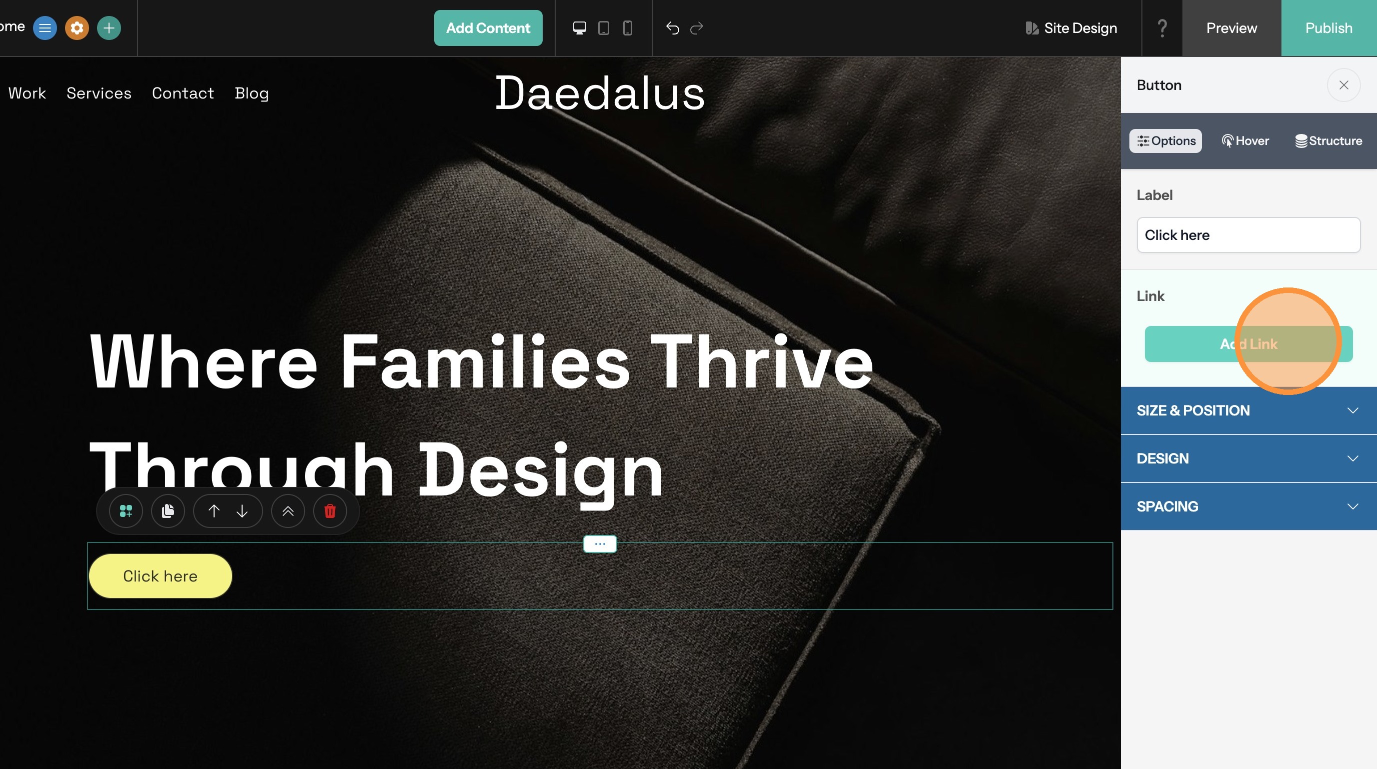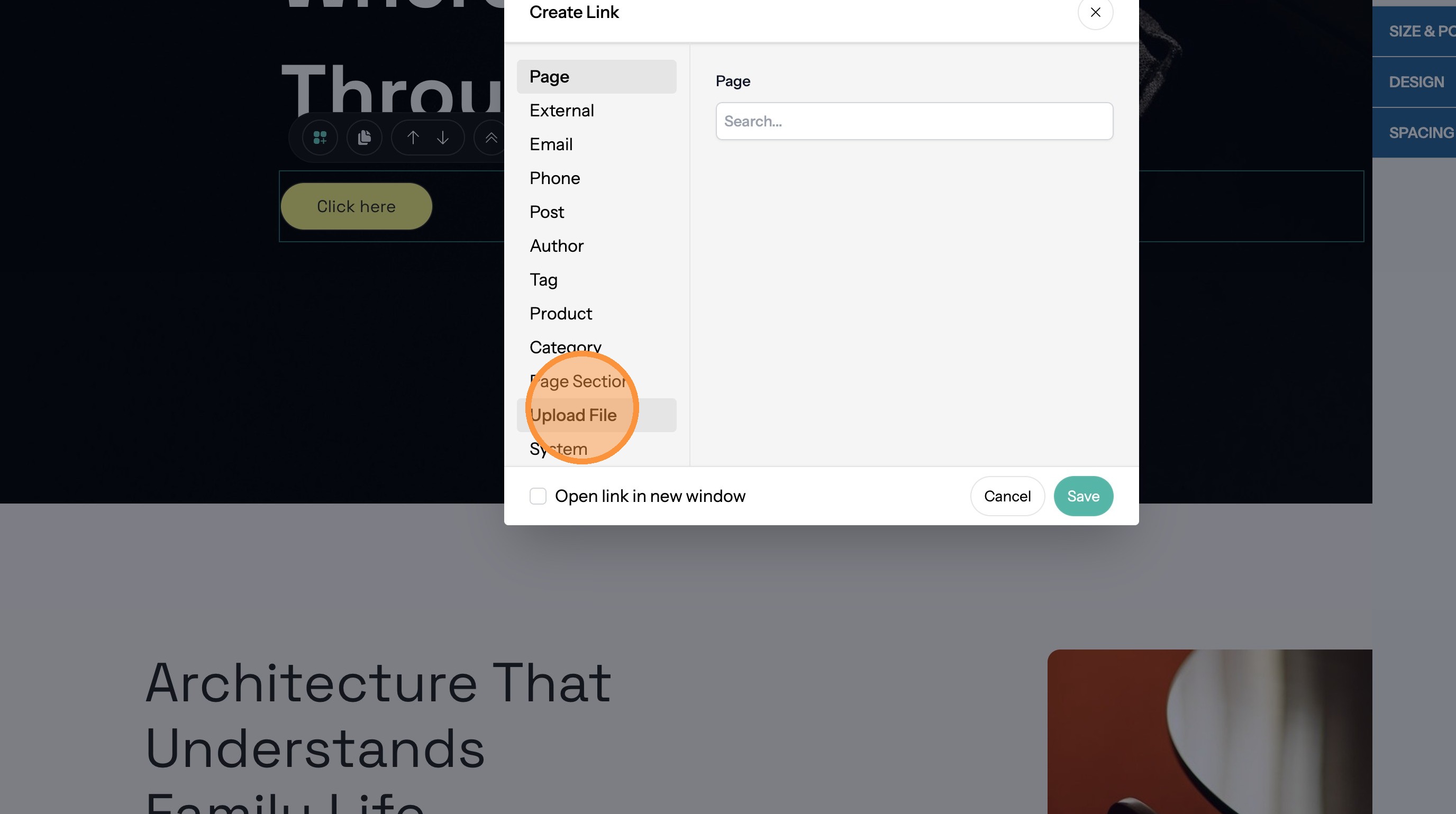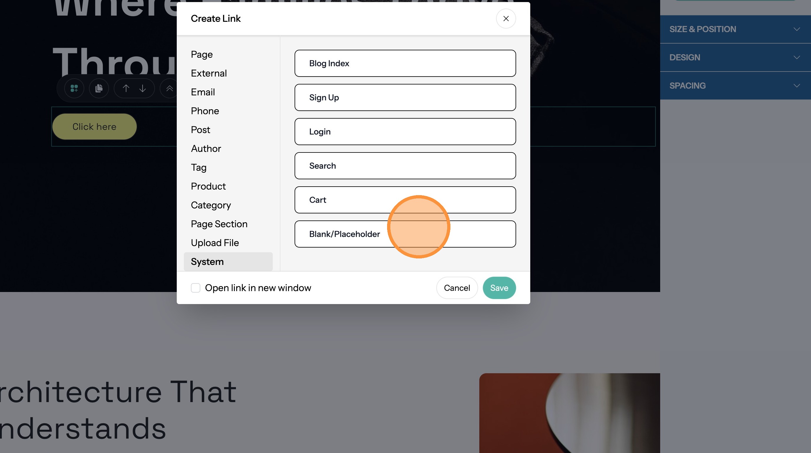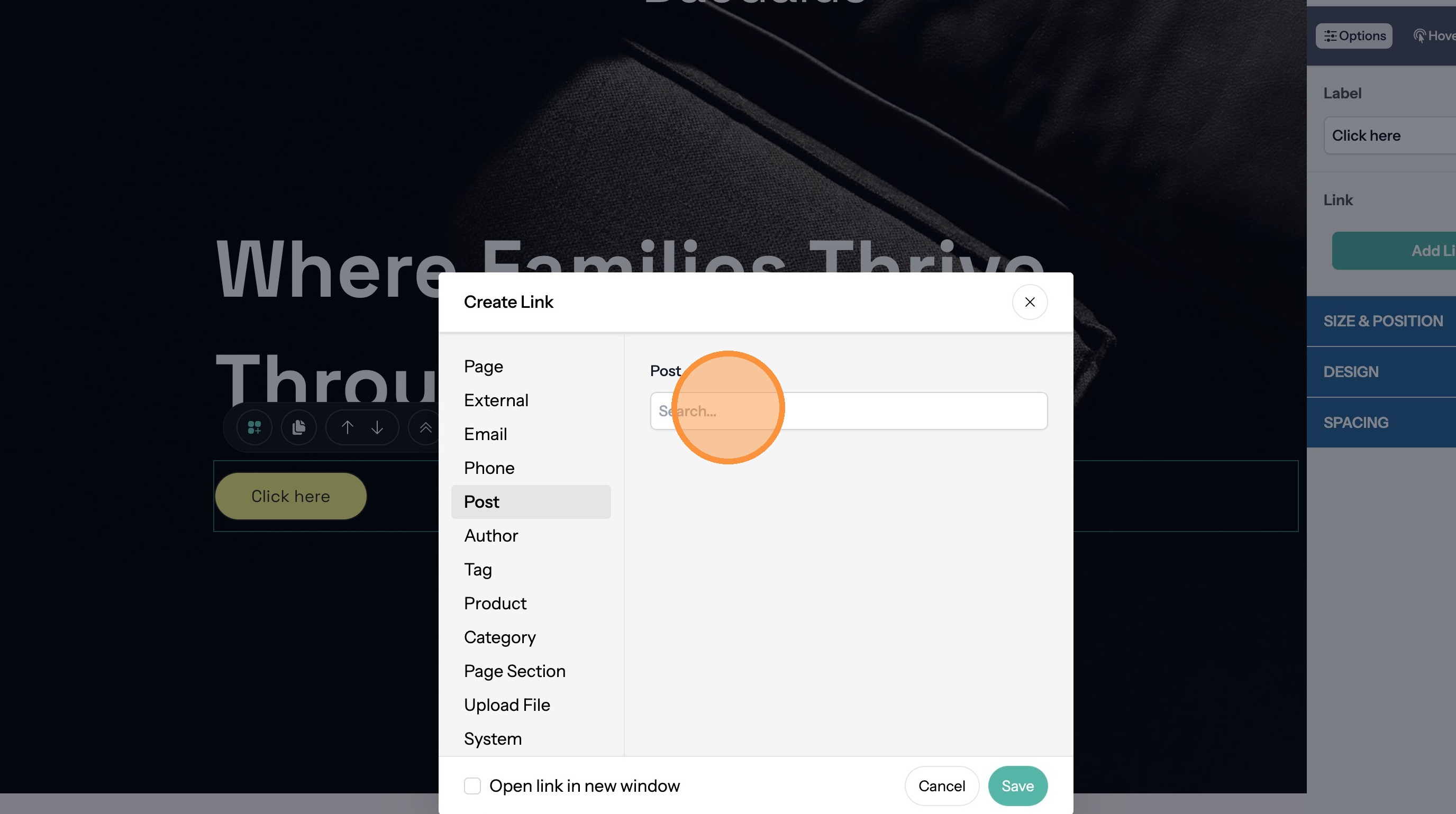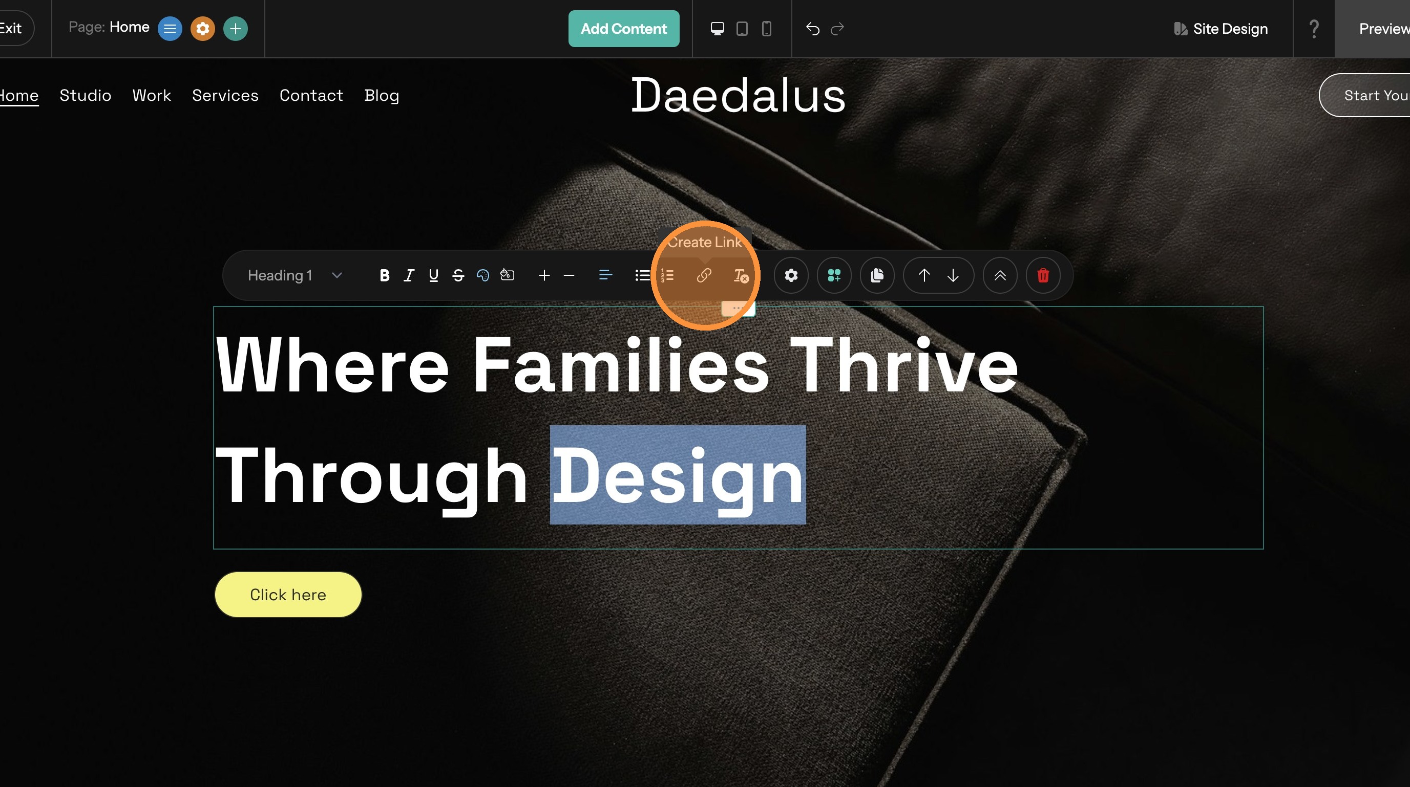 Tip: It's helpful to first name your page sections to make it easier to find the section you want to link to.
