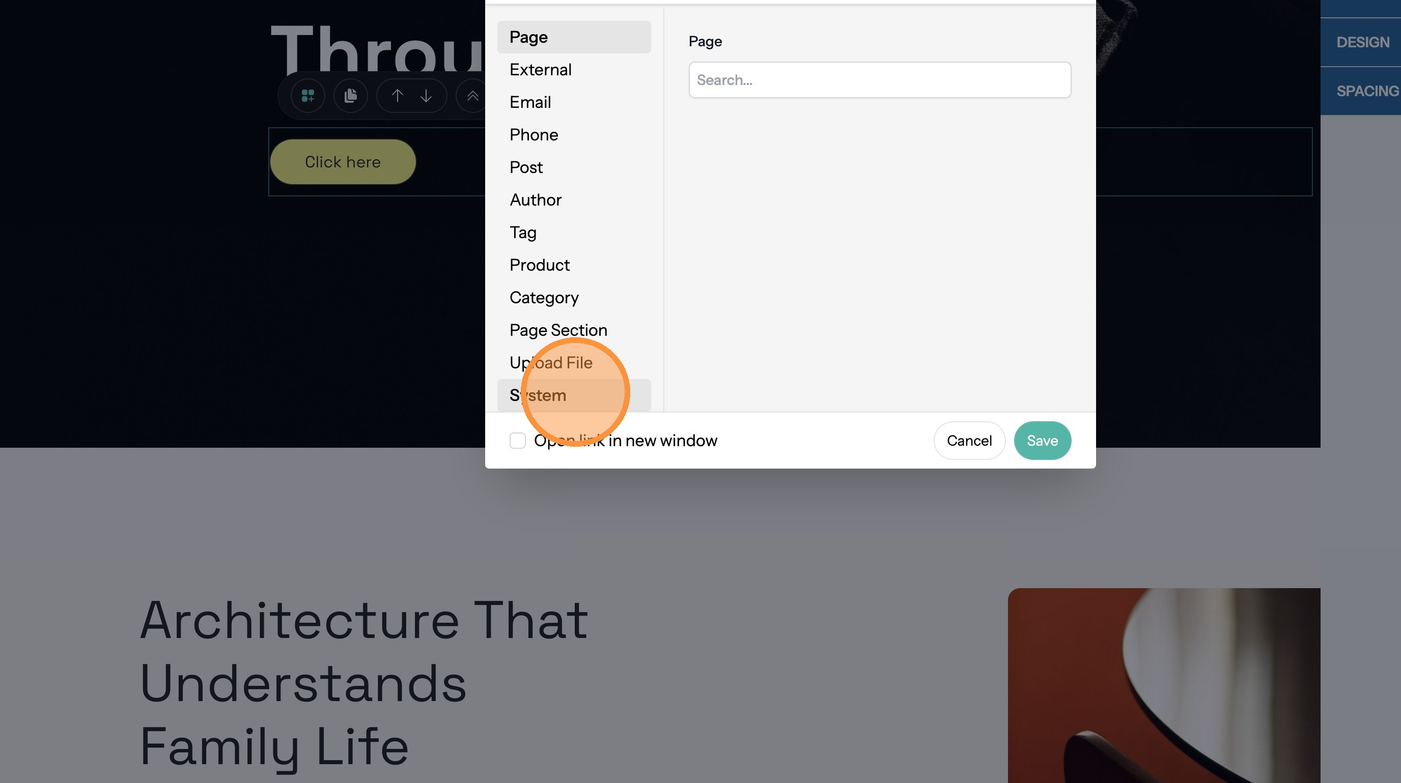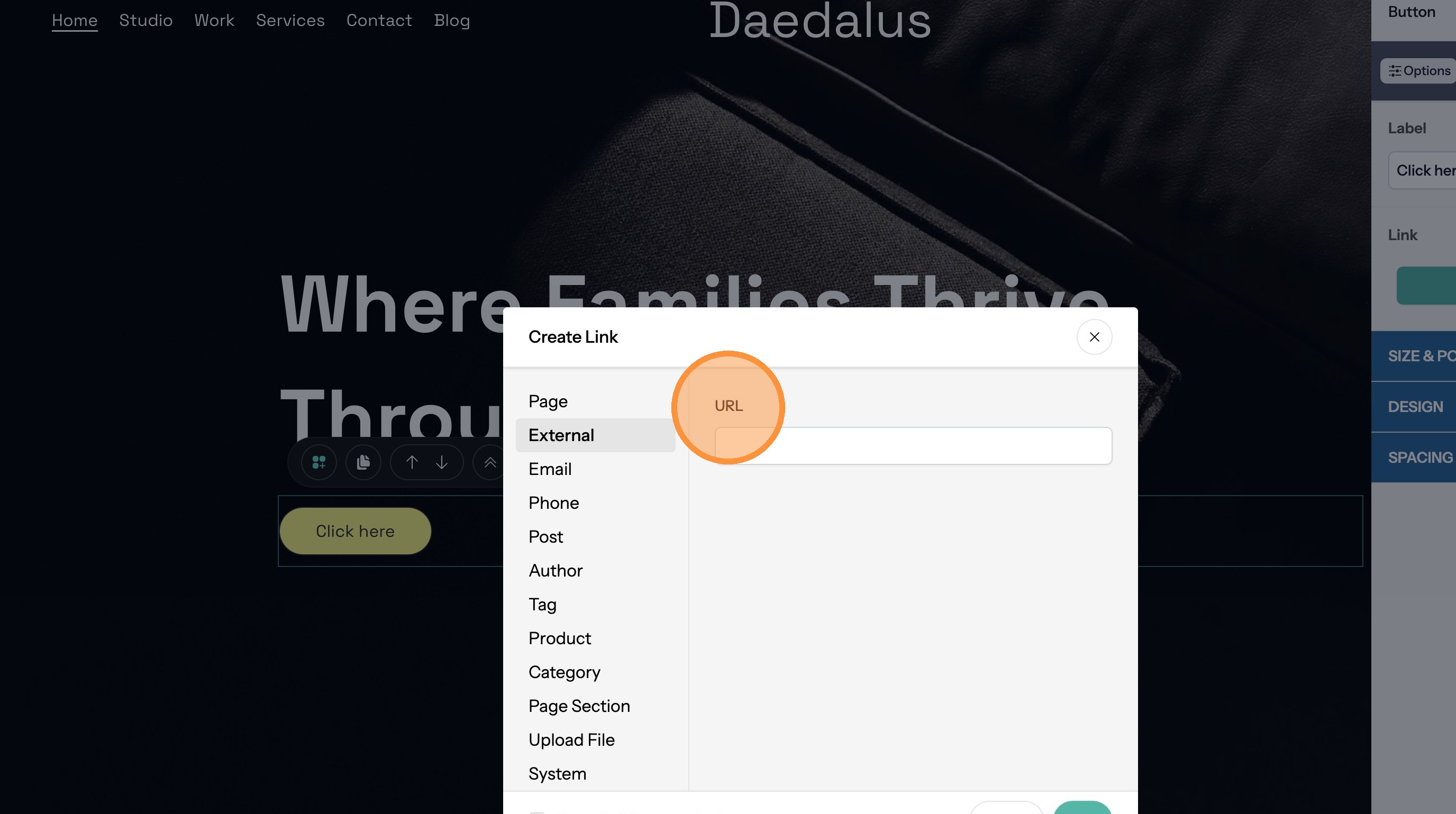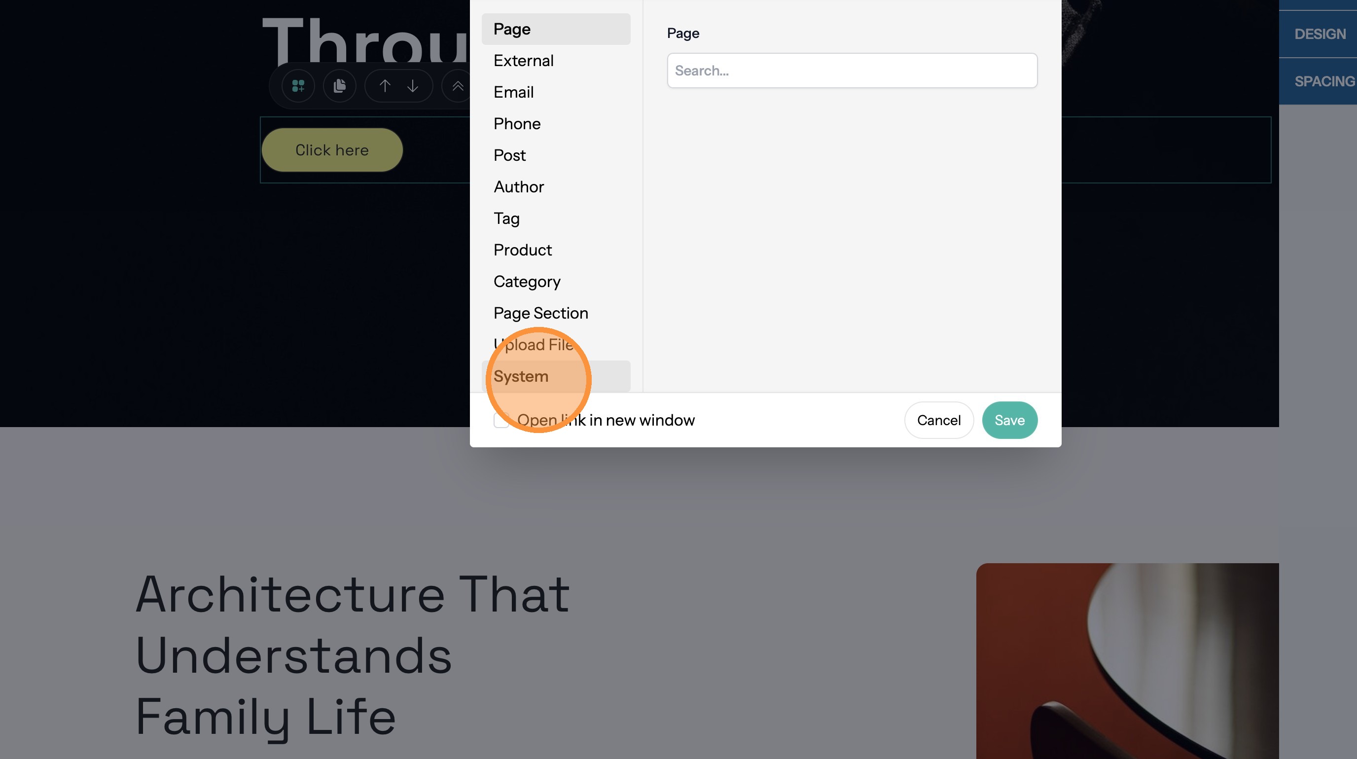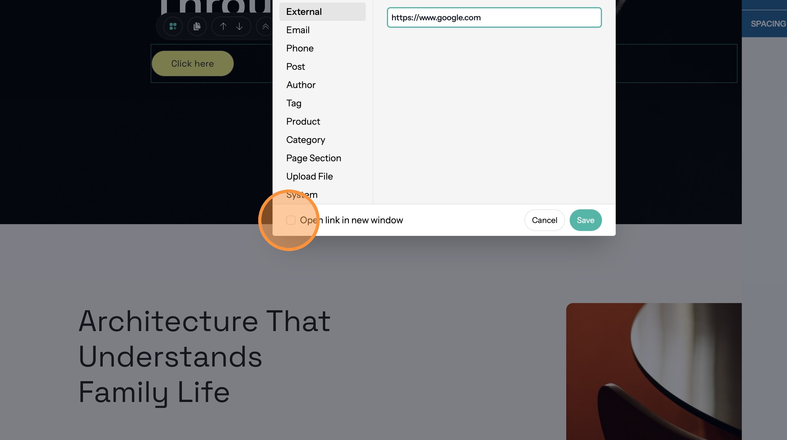 Tip: It's helpful to first name your page sections to make it easier to find the section you want to link to.