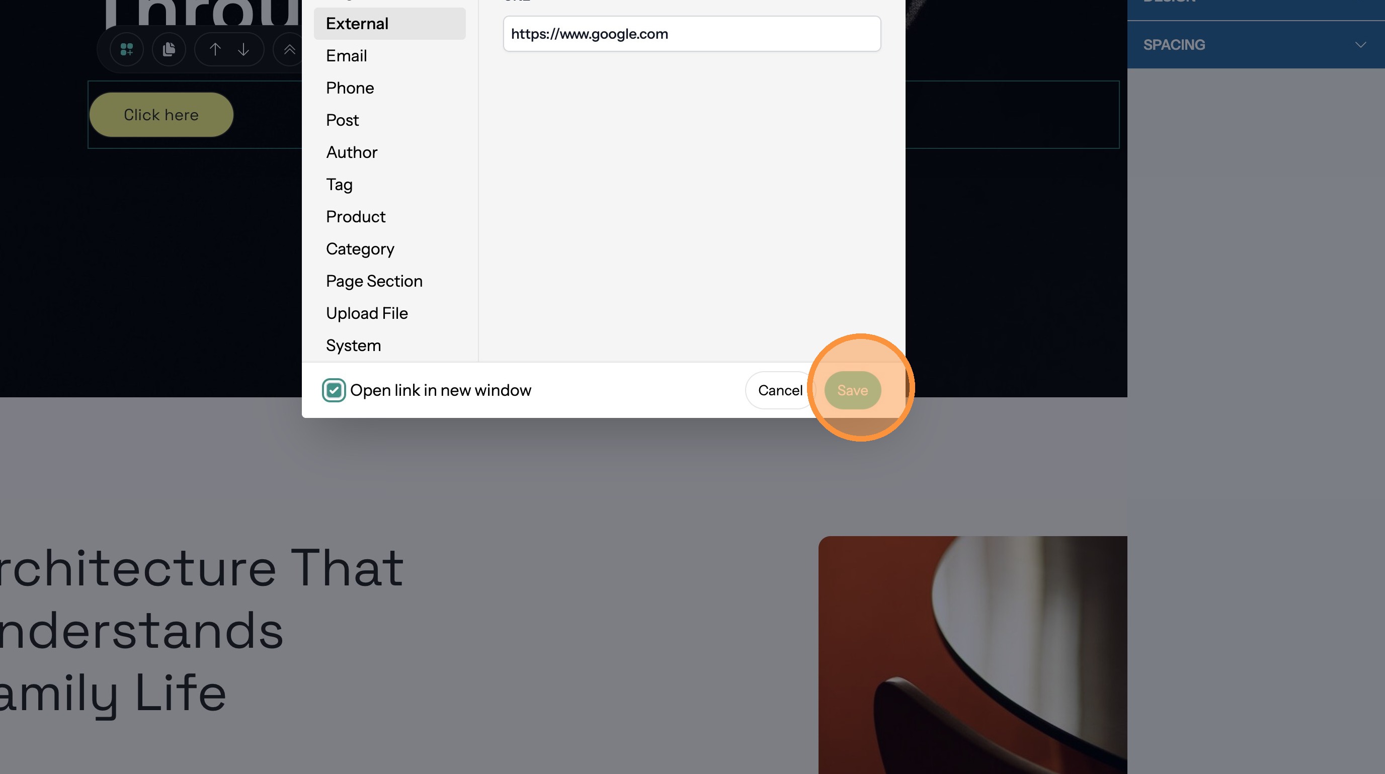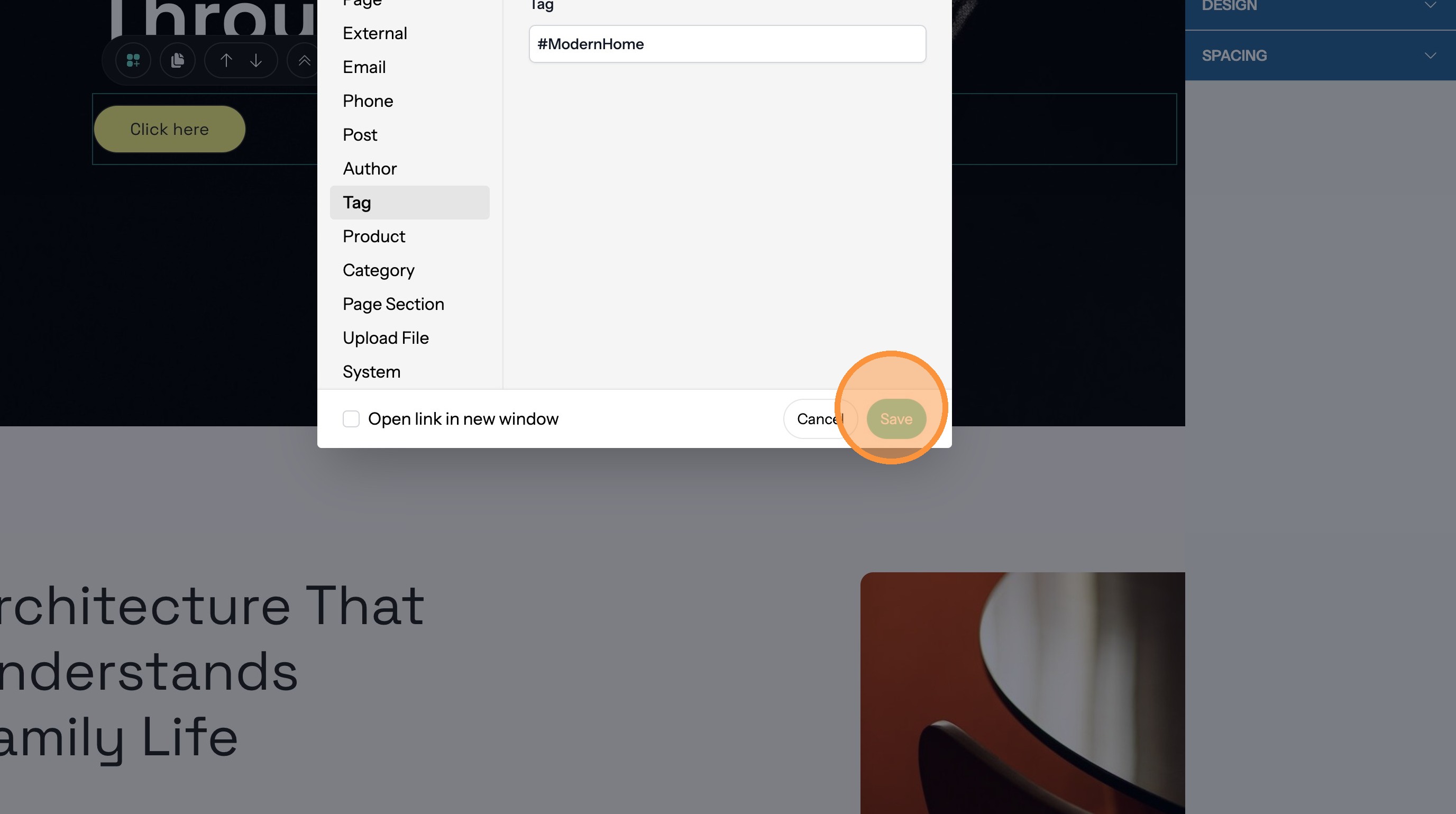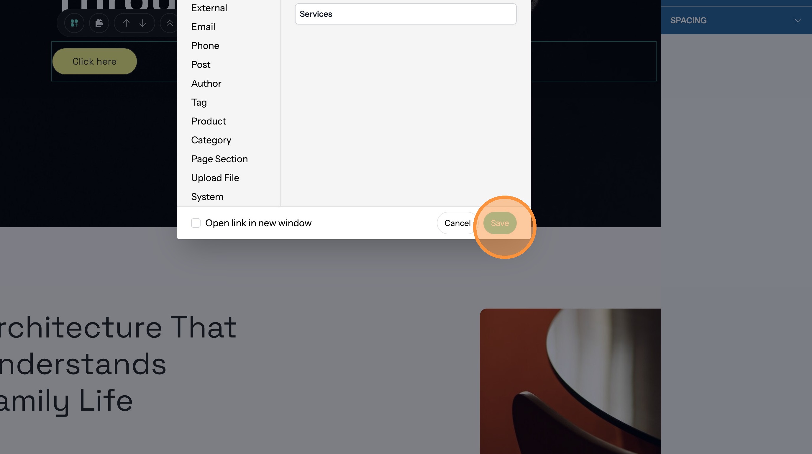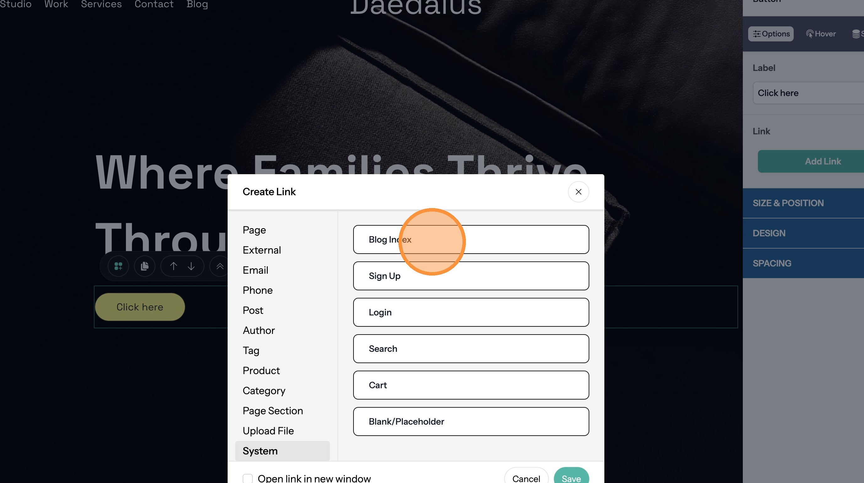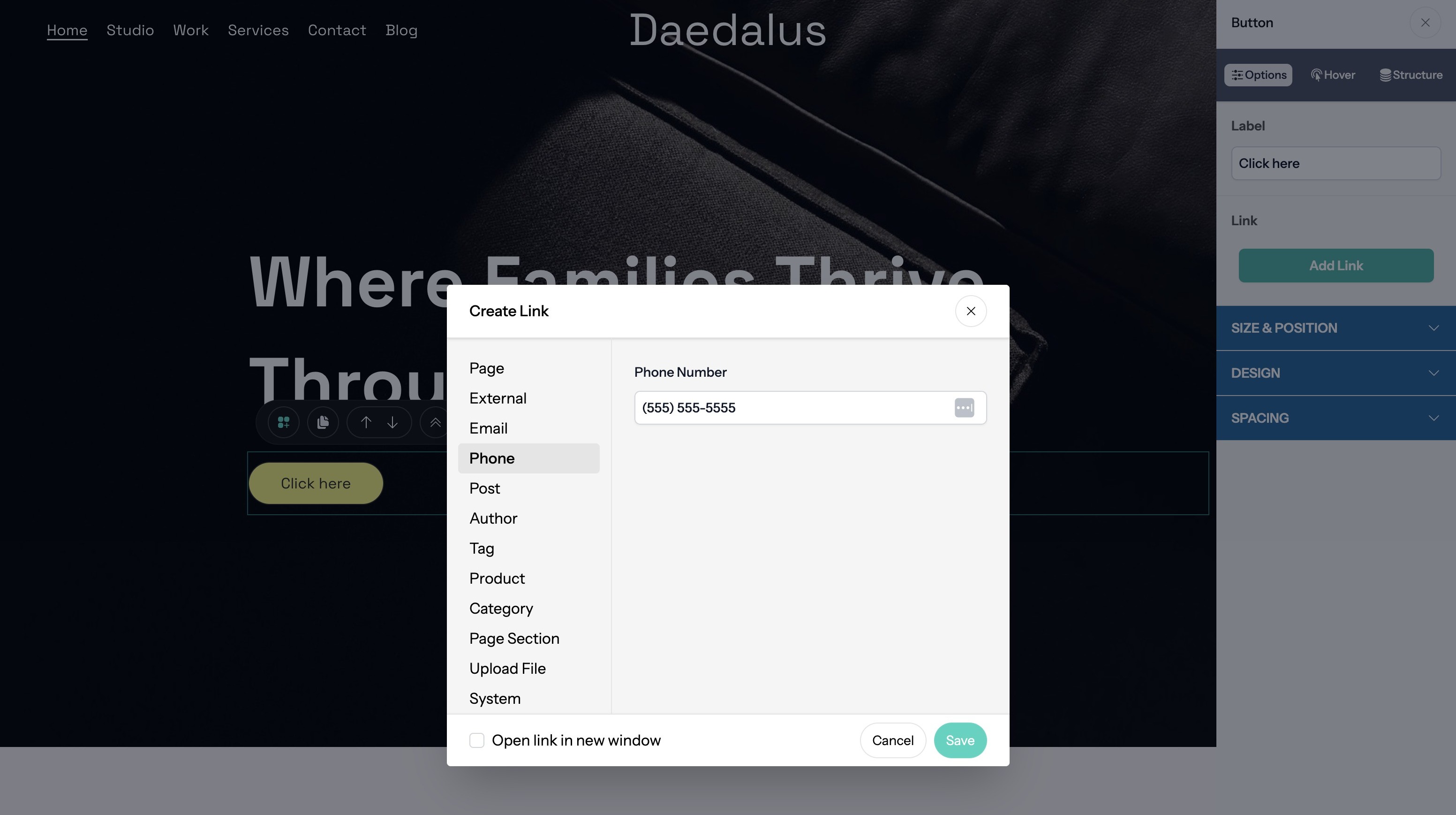 Tip: It's helpful to first name your page sections to make it easier to find the section you want to link to.