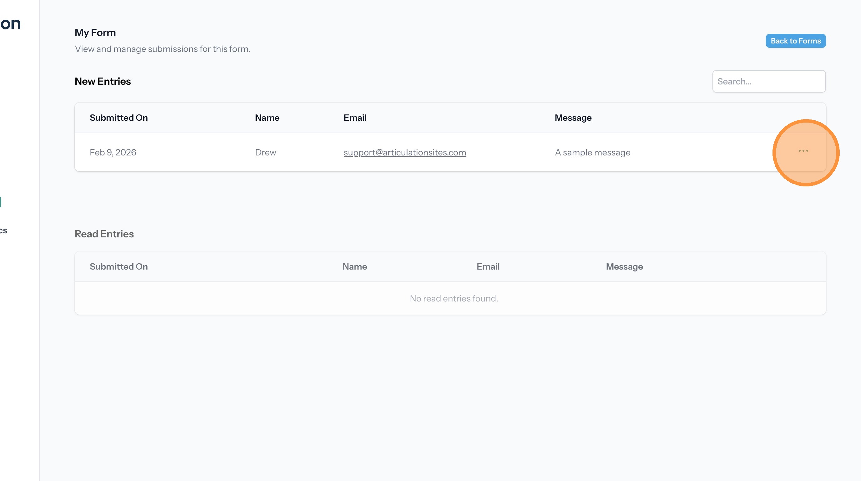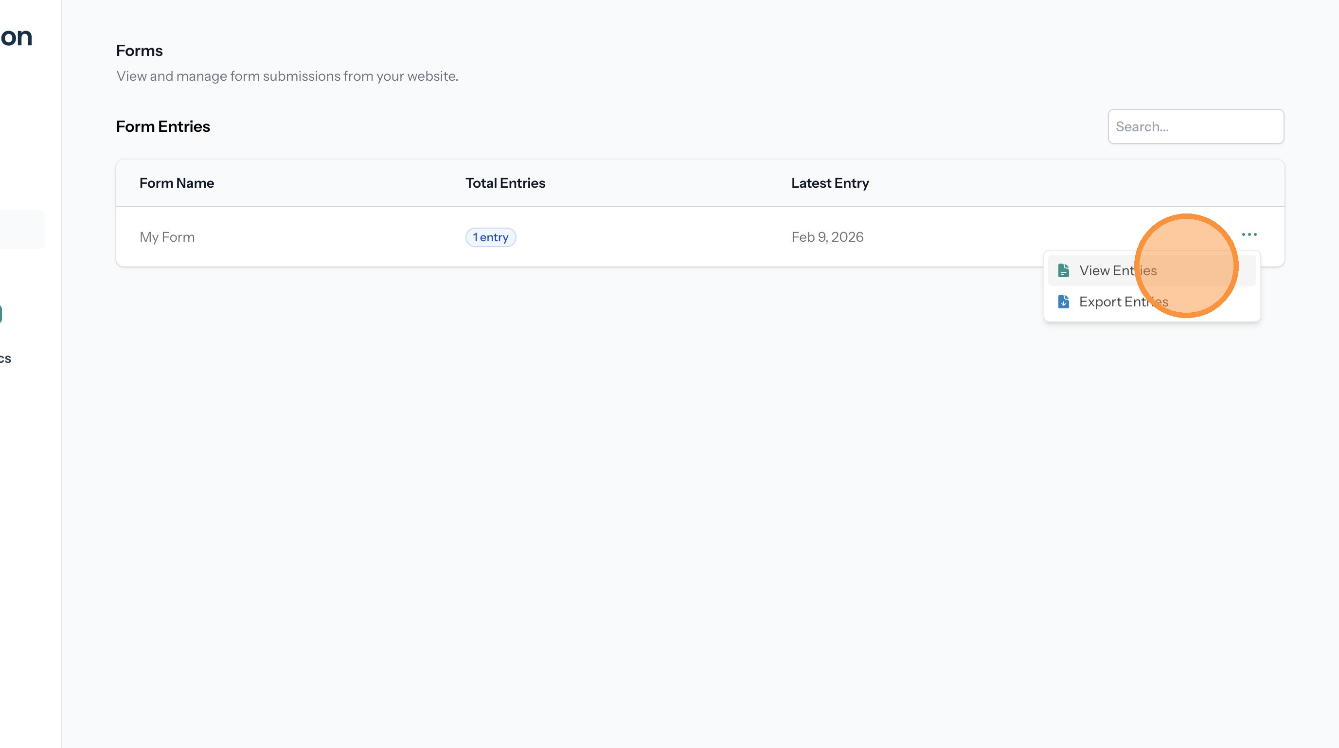 20. This page lists the entries for the form. Click the three dots next to an entry to open the menu.