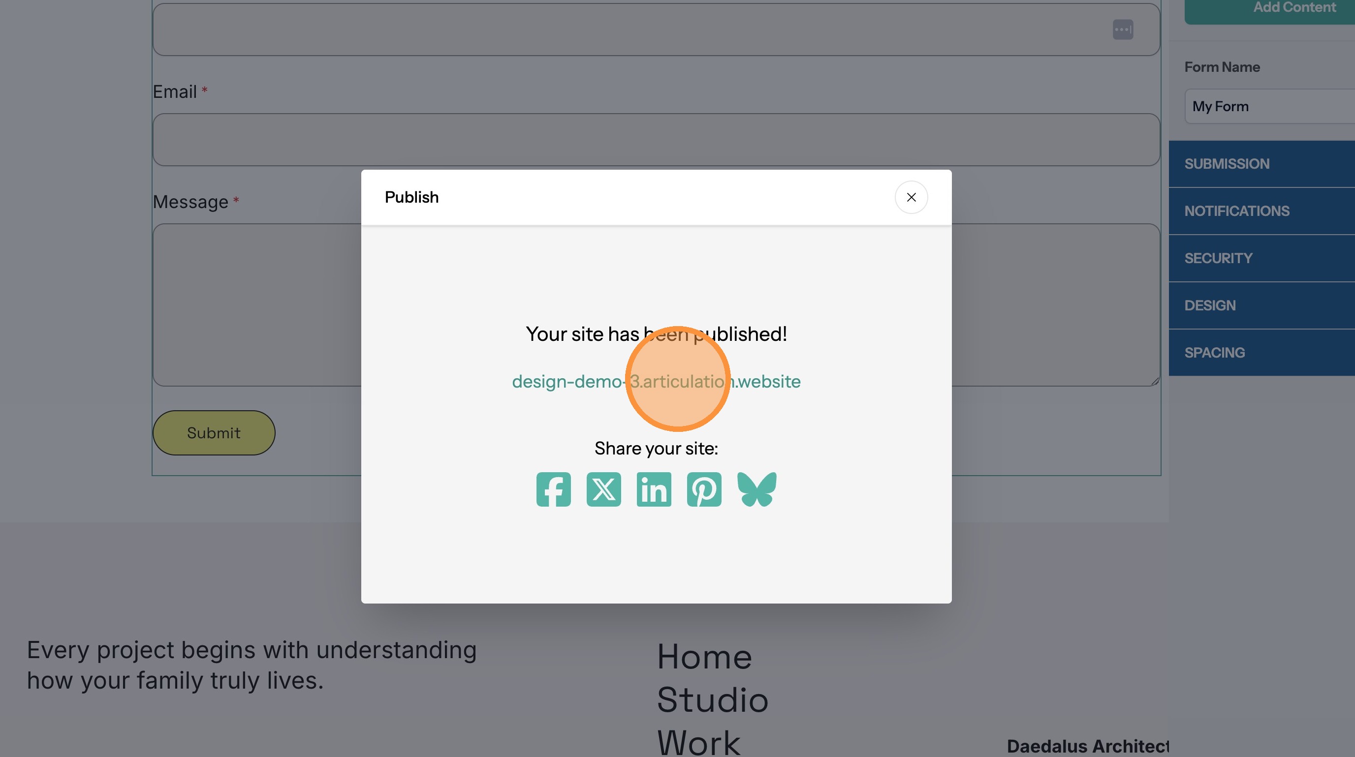 16. Click the site link to visit the published site