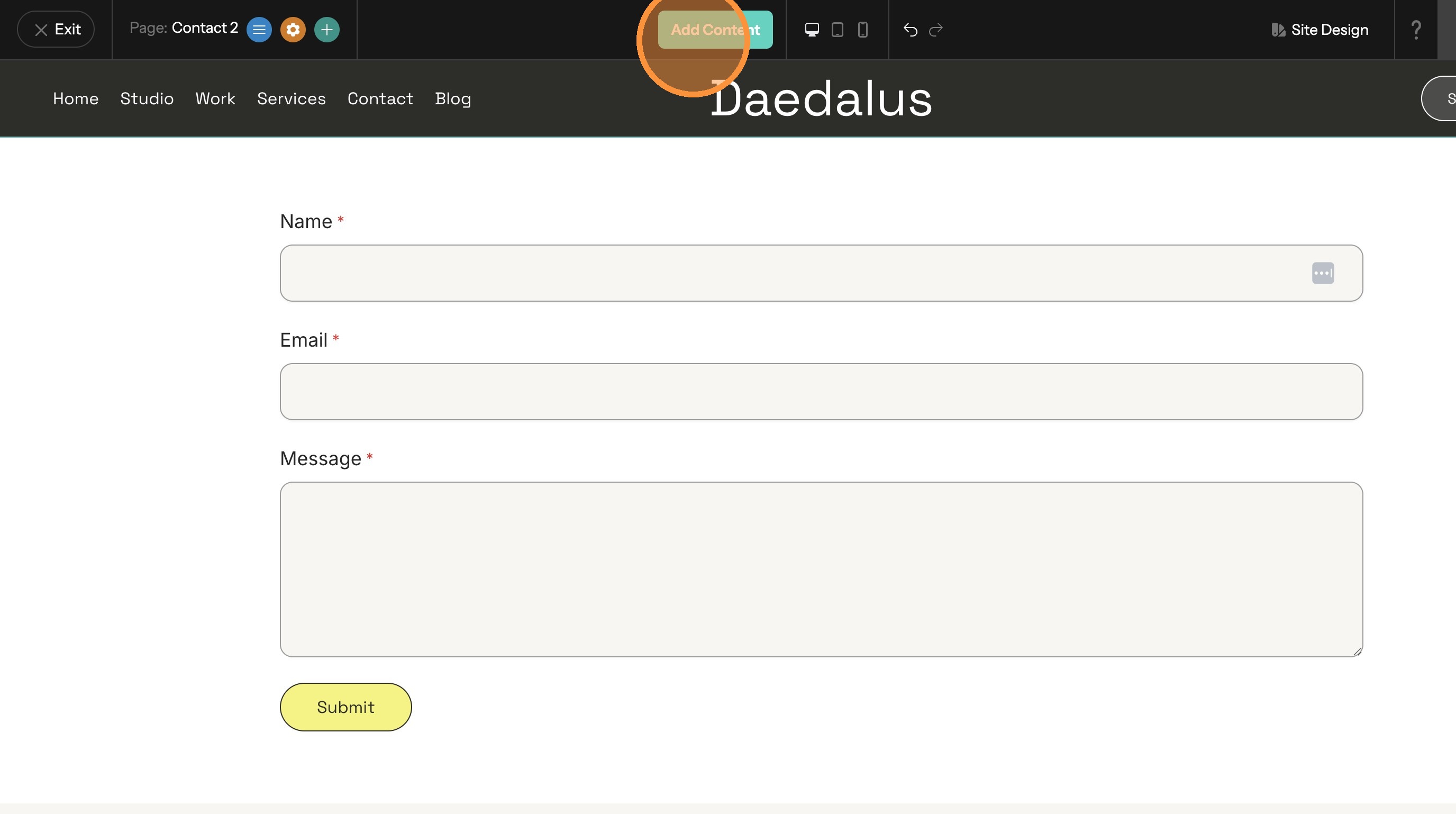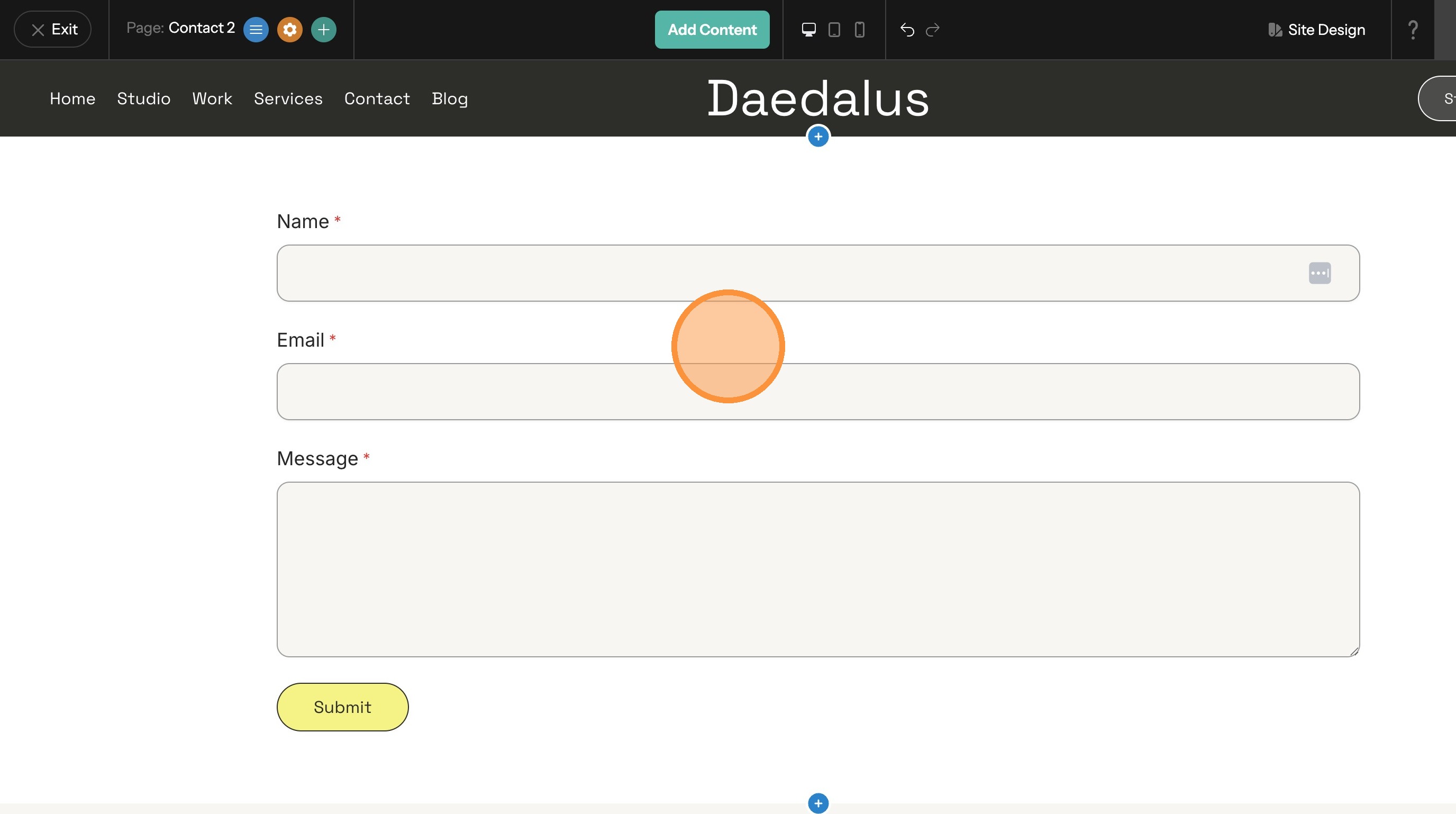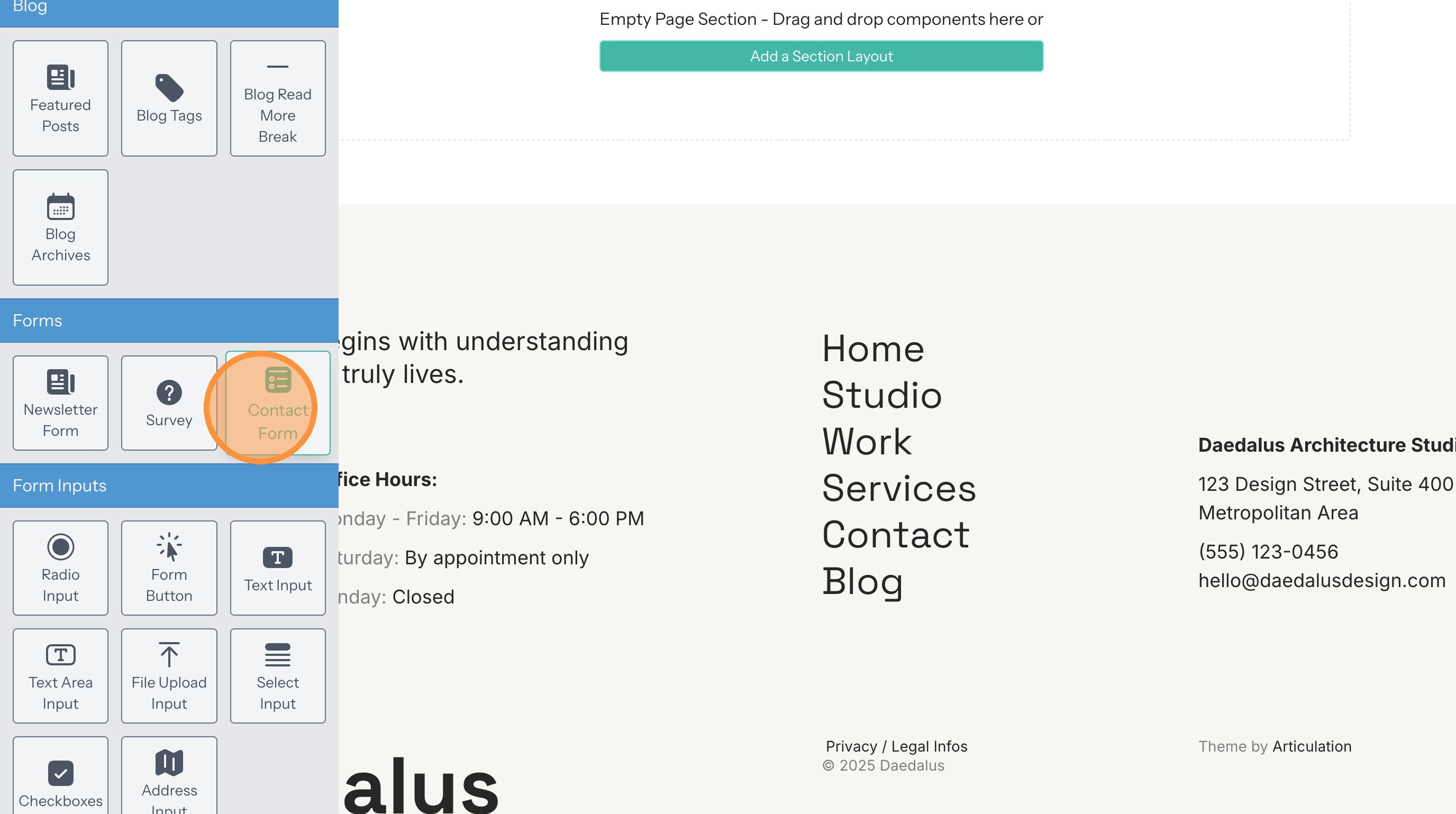 3. Drag and drop and Contact Form onto the page.