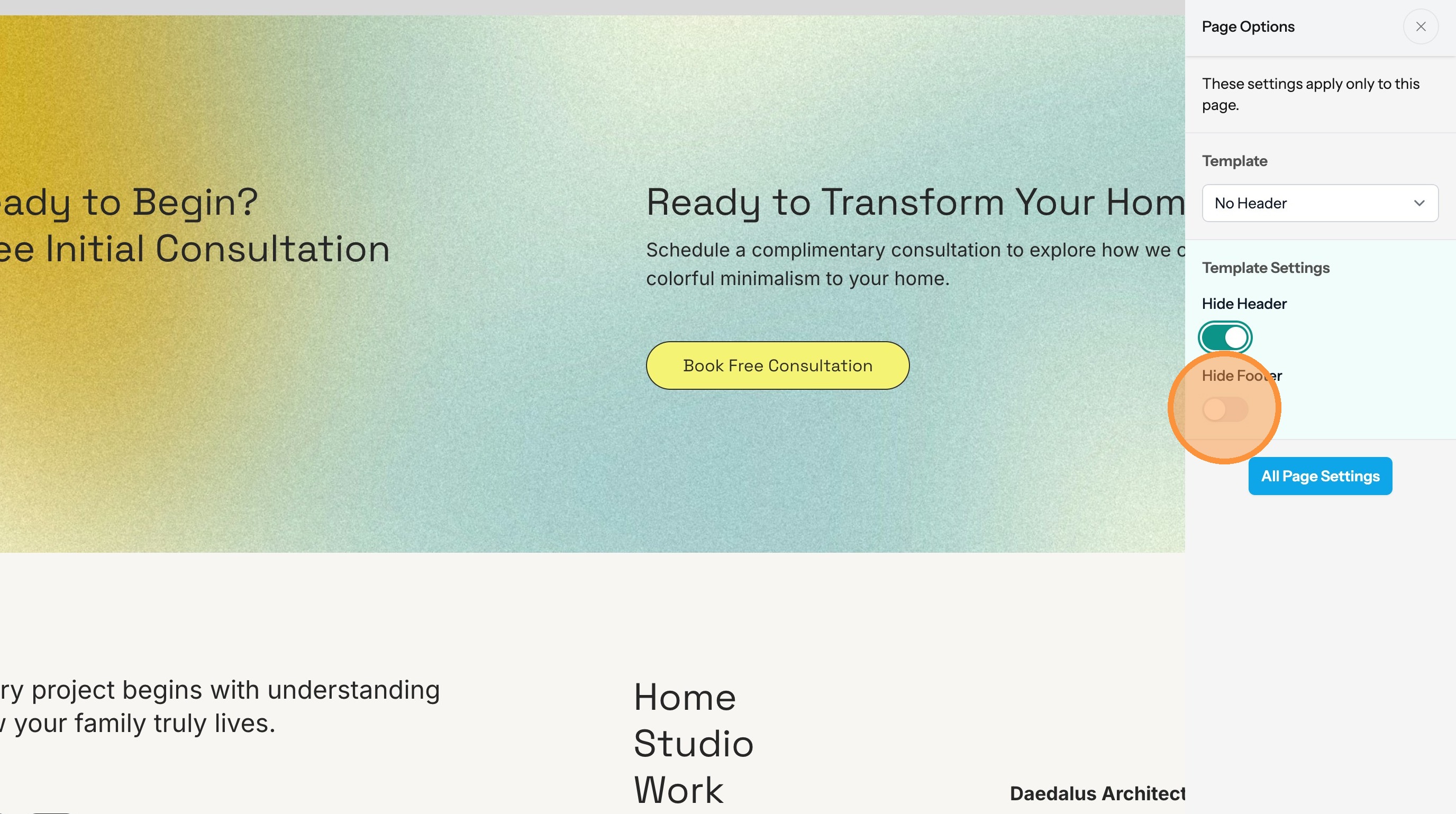 6. The "All Page Settings" button takes you to the rest of the page settings including page title, description, keywords, header/footer code, etc...