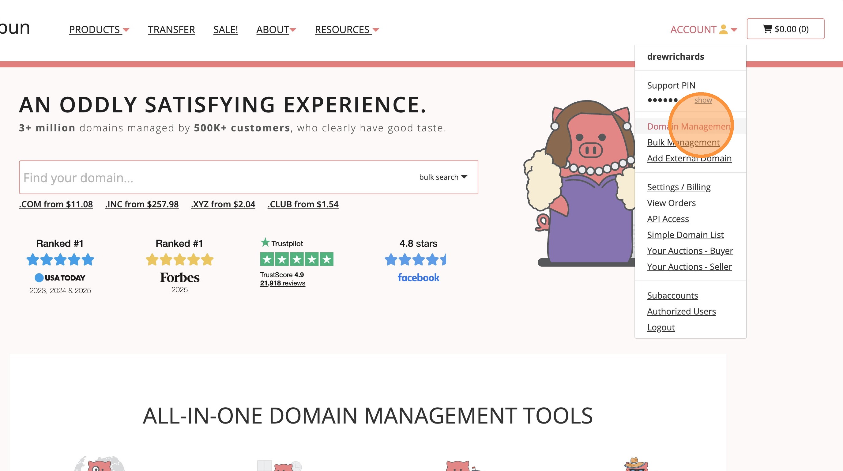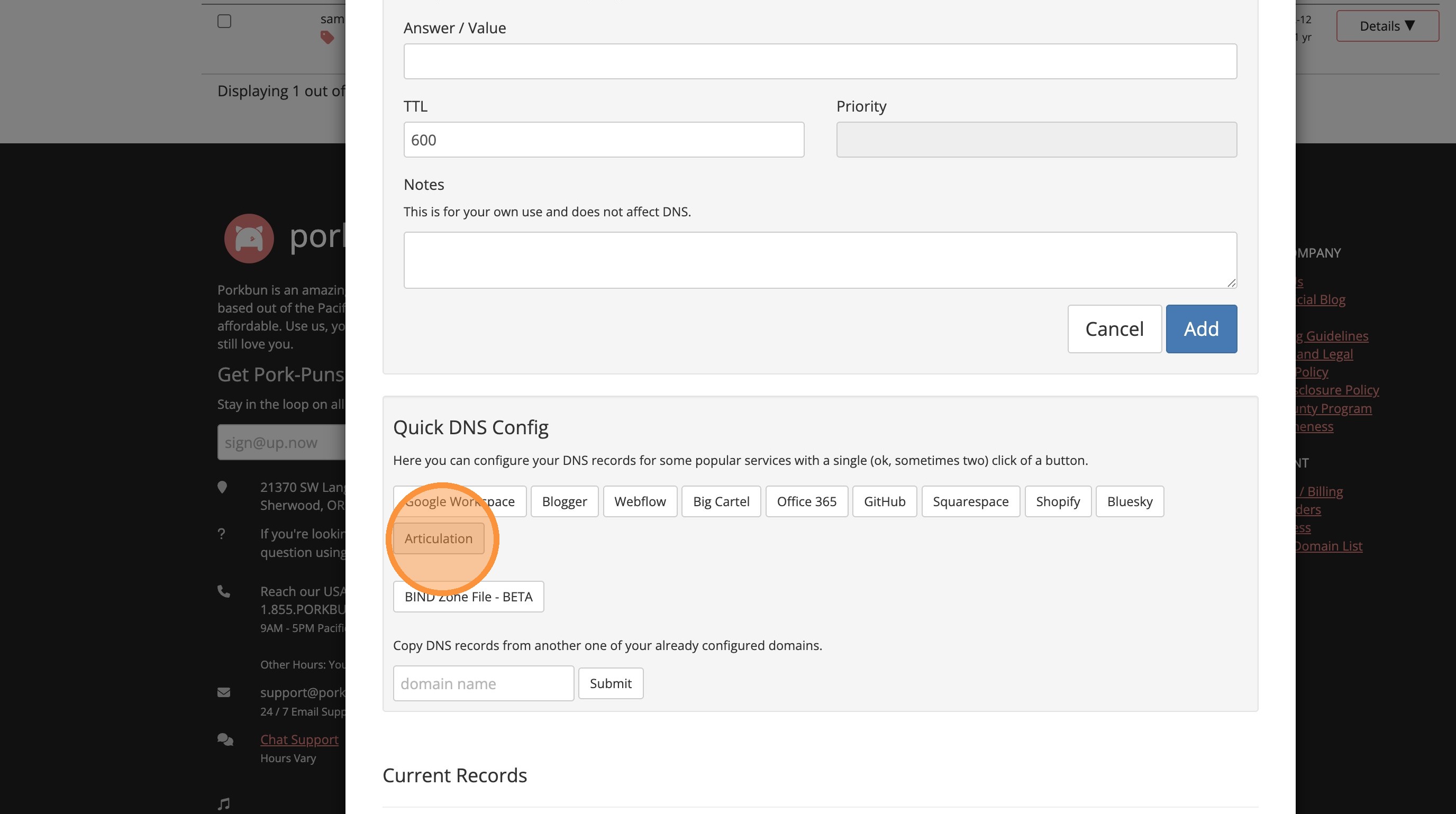 6. Click "Open Porkbun". This will open a new browser tab showing porkbun.com
