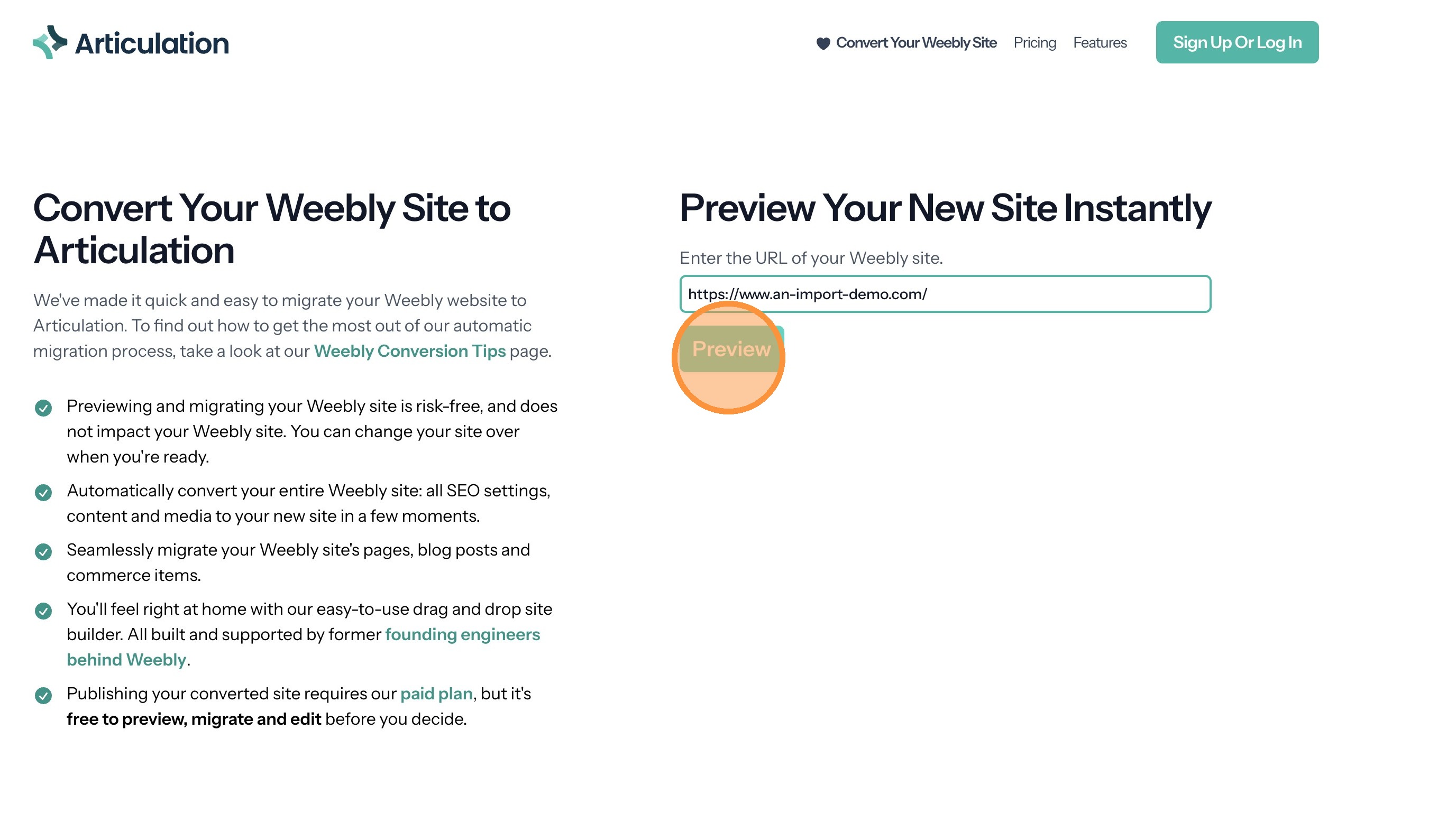 2. Click "Convert Your Weebly Site"