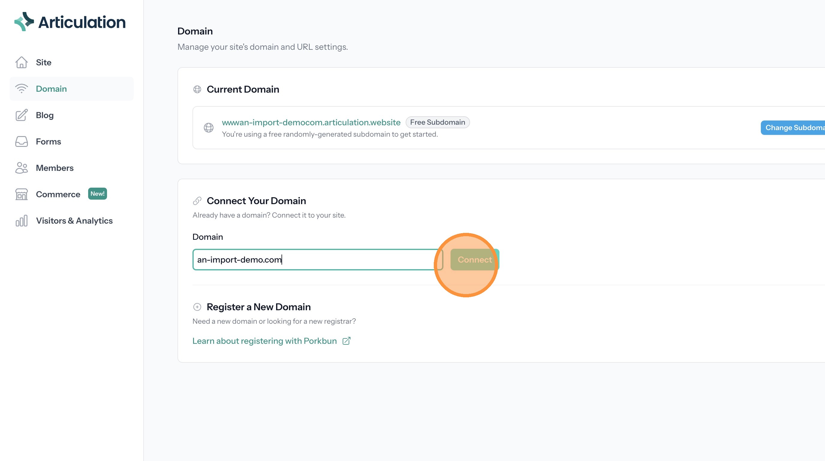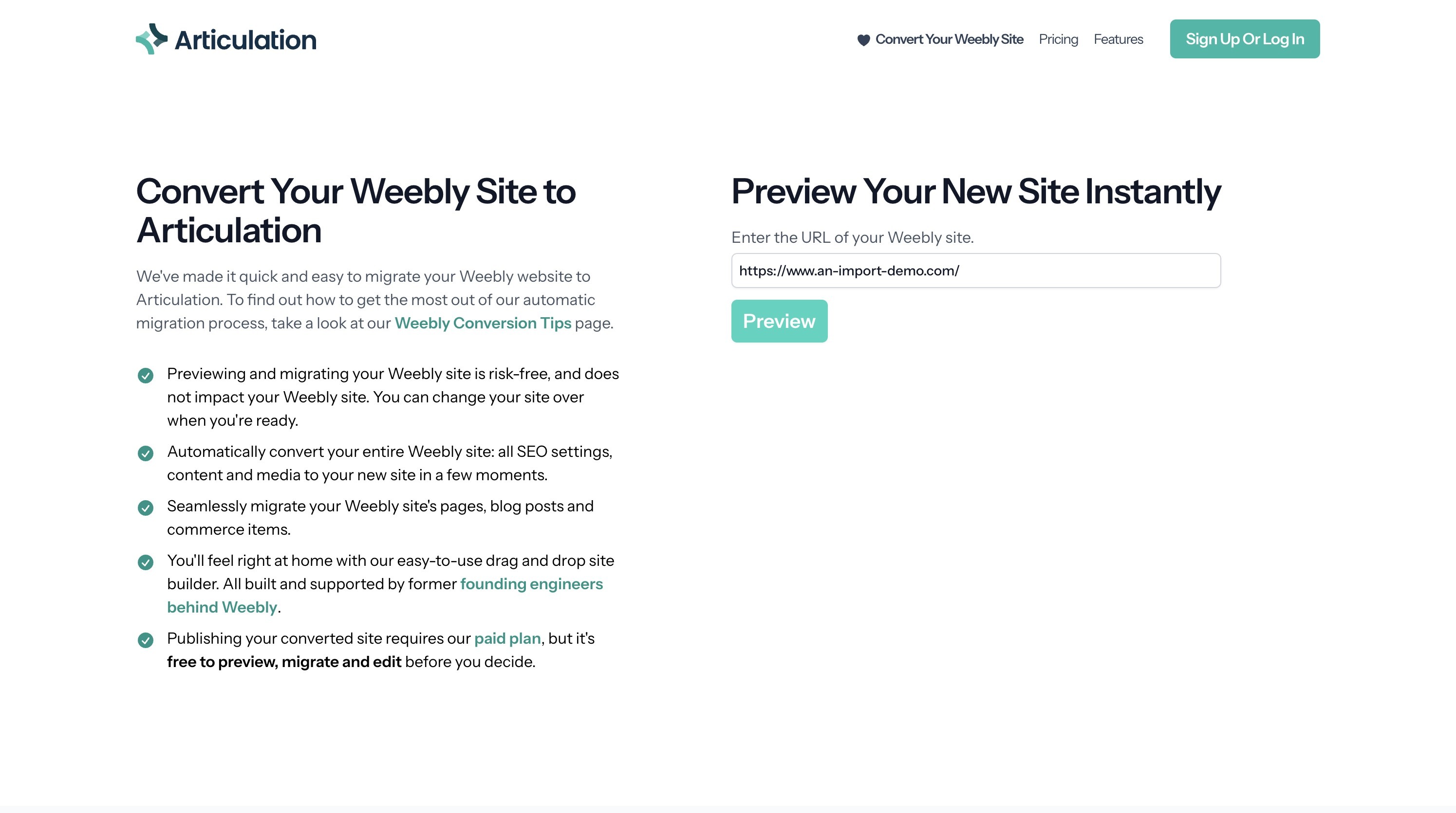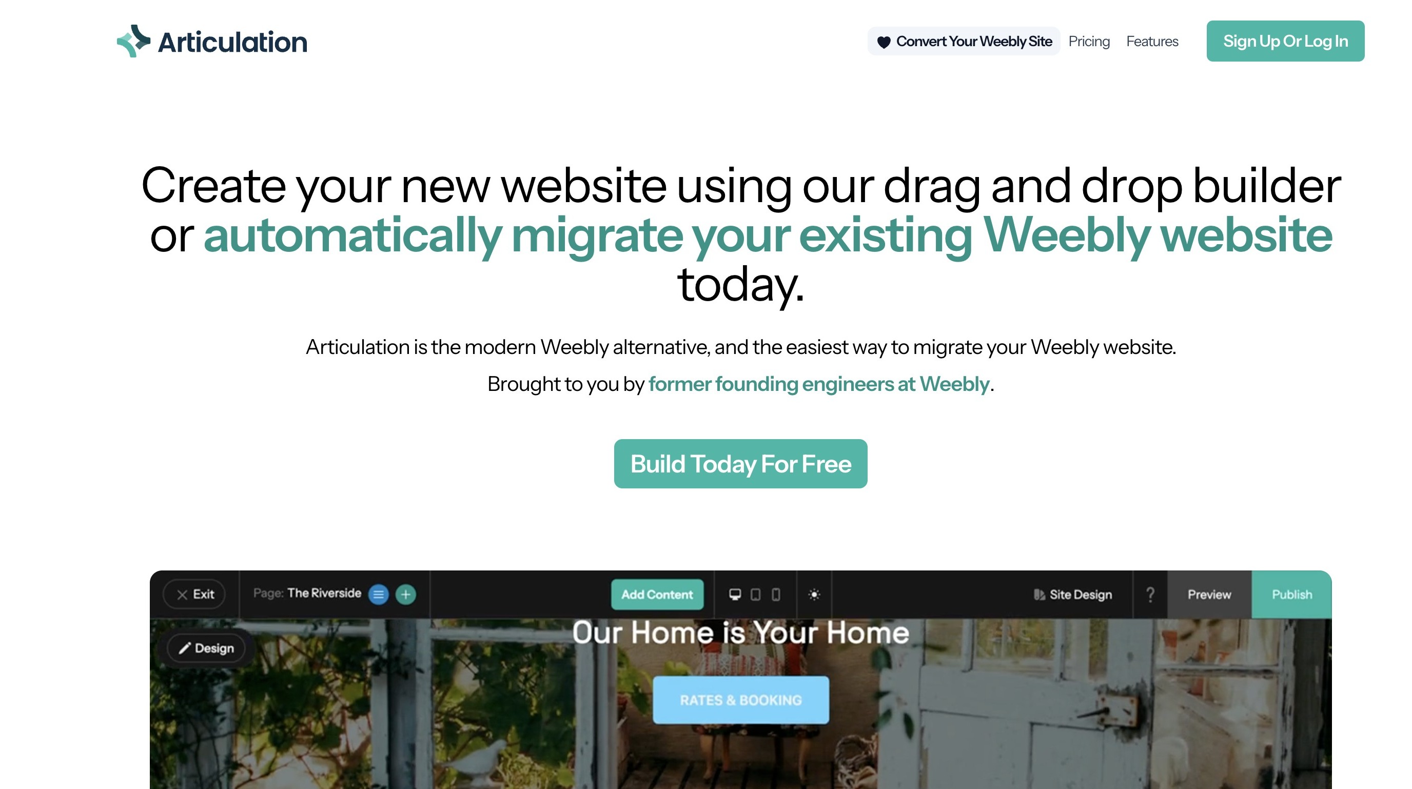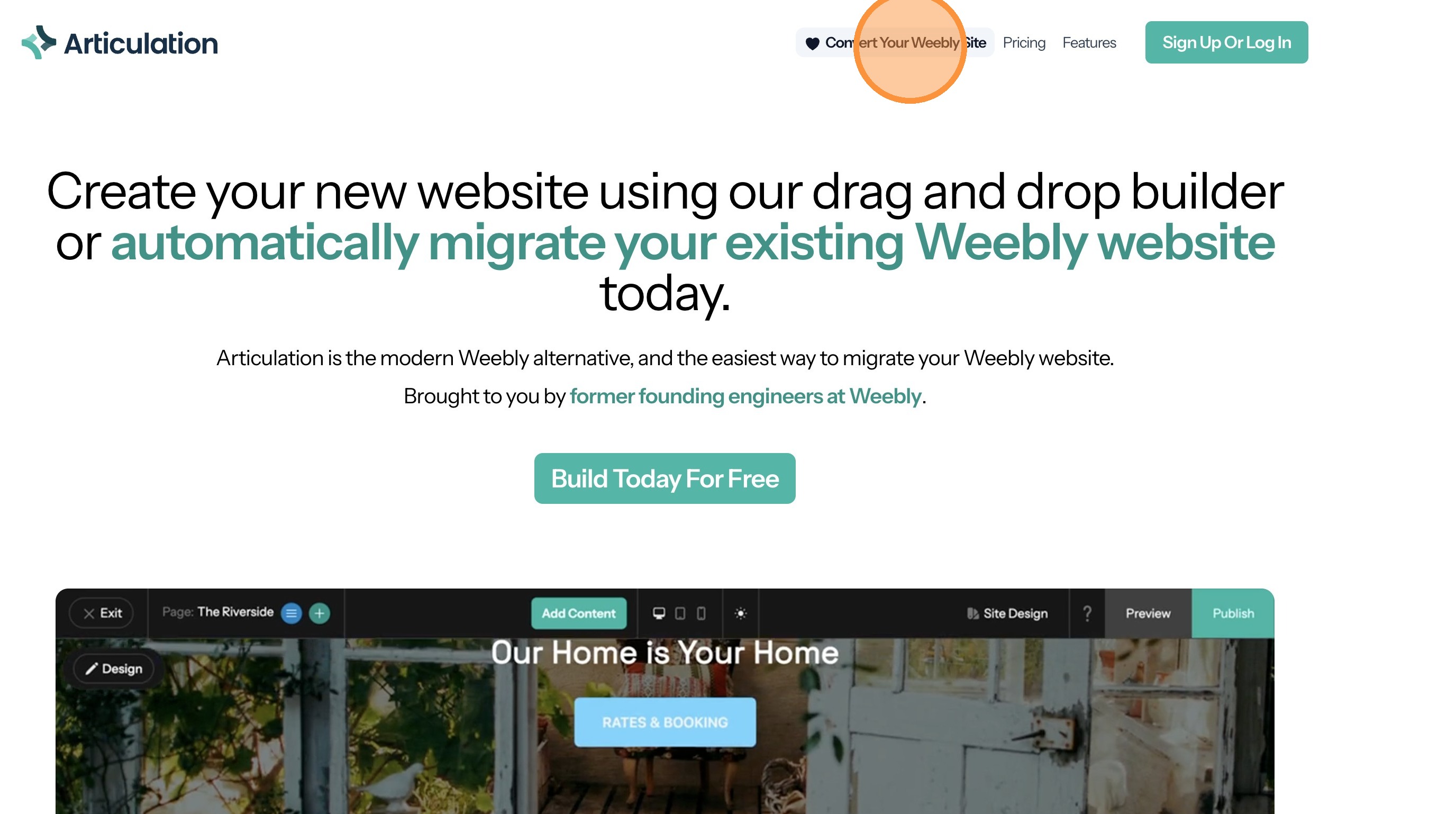 This guide walks through the process for importing your Weebly site to Articulation and connecting a custom domain.