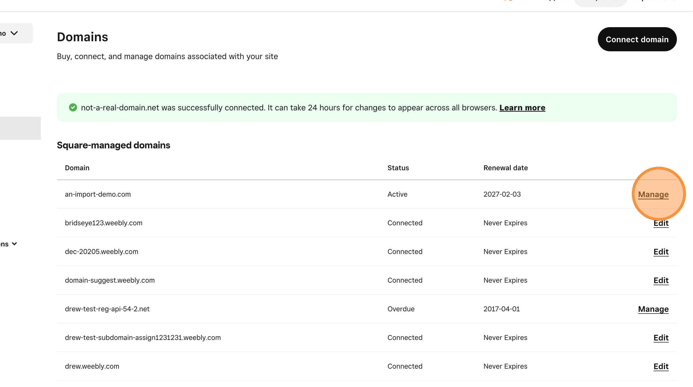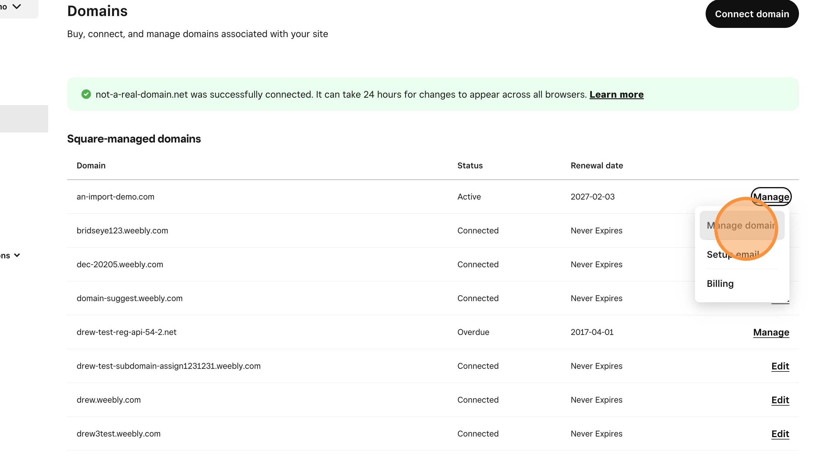 19. Click "Manage domain"