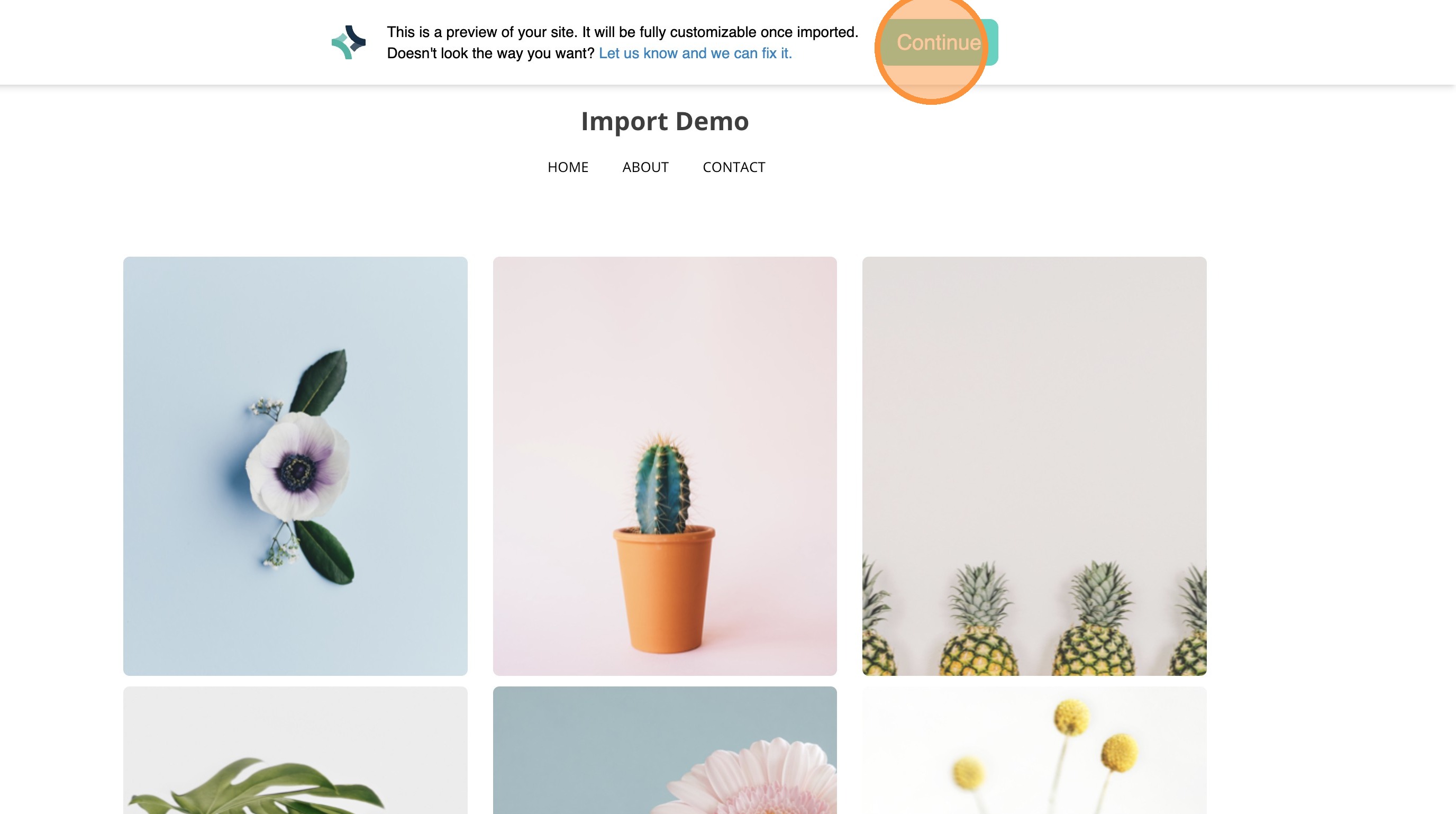5. You will see a preview of what your site will look like once imported to Articulation. Click "Continue"